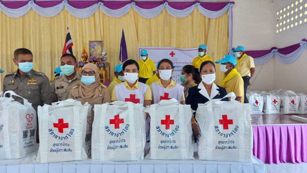 วันที่ 7 ธันวาคม 2563 สภากาชาดไทย สำนักงานบรรเทาทุกข์และประชานามัยพิทักษ์ สถานีกาชาด สิรินธร ทุ่งสง เหล่ากาชาดจังหวัดพัทลุง โดยนางมะลิ วงศ์กระพันธุ์ นายกเหล่ากาชาดจังหวัดพัทลุง มอบหมายให้ นางนงลักษณ์ รักษ์พันธ์ รองนายกเหล่ากาชาดจังหวัดพัทลุง กรรมการและสมาชิกเหล่ากาชาดจังหวัดพัทลุง ร่วมกับลงพื้นที่ตรวจเยี่ยมให้กำลังและมอบถุงยังชีพชุดธารน้ำใจแก่ผู้ประสบอุทกภัยเวลา 09.00 น.ณ ศาลาประชาคมอำเภอเขาชัยสน อำเภอเขาชัยสน จำนวน 550 ชุดเวลา 10.00 น. ณ ศาลาประชาคมอำเภอตะโหมด อำเภอตะโหมด จำนวน 320 ชุดเวลา 11.00 น.ณ ศาลาหมู่ที่ 5 ตำบลป่าบอน อำเภอป่าบอน 450 ชุดโดยเวลา 13.30 น.นายกู้เกียรติ วงศ์กระพันธุ์ ผู้ว่าราชการจังหวัดพัทลุง ได้ร่วมเป็นเกียรติมอบถุงยังชีพชุดธารน้ำใจ จากสภากาชาดไทย ในครั้งด้วย ณ ศาลาอเนกประสงค์เทศบาลตำบลหารเทา อำเภอปากพะยูน จำนวน 575 ชุดเวลา 15.30 น.ณ ศาลาประชาคมอำเภอบางแก้ว จำนวน 310 ชุด เพื่อเป็นขวัญและกำลังใจแก่ผู้ประสบภัยต่อไป