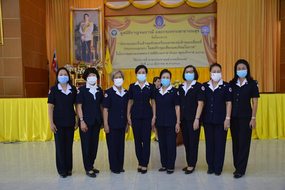 วันที่ 8 ธันวาคม 2563 นางนงค์นิตย์ เนียมศิริ นายกเหล่ากาชาดจังหวัดเลย มอบหมายนางบุษดี สุวรรณรัตน์ รองนายกเหล่ากาชาดจังหวัดเลย / กรรมการ / ที่ปรึกษา / สมาชิกเหล่ากาชาดจังหวัดเลย ร่วมพิธีเปิด”โครงการคัดกรองมะเร็งเต้านมโดยเครื่องเอกซเรย์เต้านมเคลื่อนที่” (Mammogram) ในสตรีกลุ่มเสี่ยงและด้อยโอกาส ในโอกาสมหามงคลพระราชพิธีบรมราชาภิเษก พุทธศักราช 2562 ณ ศาลาประชาคมอำเภอเมืองเลย อำเภอเมือง จังหวัดเลย โดยมี นายปรีดา วรหาร นายแพทย์สาธารณสุขจังหวัดเลย เป็นประธาน