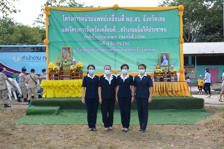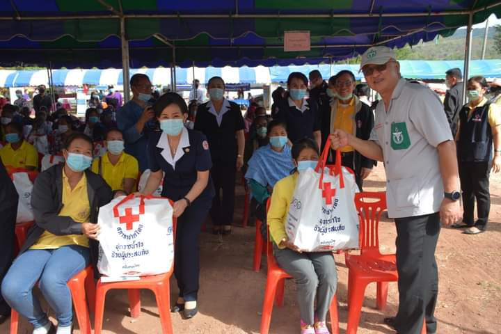 วันที่ 18 ธันวาคม 2563 นางนงค์นิตย์ เนียมศิริ นายกเหล่ากาชาดจังหวัดเลย มอบหมายนางบุษดี สุวรรณรัตน์ รองนายกเหล่ากาชาดจังหวัดเลย / เหรัญญิกเหล่ากาชาดจังหวัดเลย / กรรมการเหล่ากาชาดจังหวัดเลย พร้อมหัวหน้าส่วนราชการ และผู้แทนจากภาคส่วนต่างๆ ร่วมโครงการหน่วยแพทย์เคลื่อนที่ พอ.สว.จังหวัดเลย และโครงการการบูรณาการสร้างรอยยิ้ม…เคลื่อนที่ ให้กับประชาชนชาวจังหวัดเลย ประจำปีงบประมาณ 2564 ครั้งที่ 3/2564 ณ โรงเรียนวังยาง บ้านศรีฐาน หมู่ที่ 1 ต.ศรีฐาน อ.ภูกระดึง จังหวัดเลย พร้อมนำเครื่องอุปโภค บริโภค จำนวน 50 ถุง ไปมอบให้แก่ราษฎรกลุ่มเปราะบางในสังคม ผู้สูงอายุ ผู้ยากไร้ และผู้ด้อยโอกาส ภายใต้กิจกรรม “วันกาชาด บรรเทาทุกข์ บำรุงสุข ปวงประชา” โดยมี นายชัยธวัช เนียมศิริ ผู้ว่าราชการจังหวัดเลย เป็นประธานในพิธี
