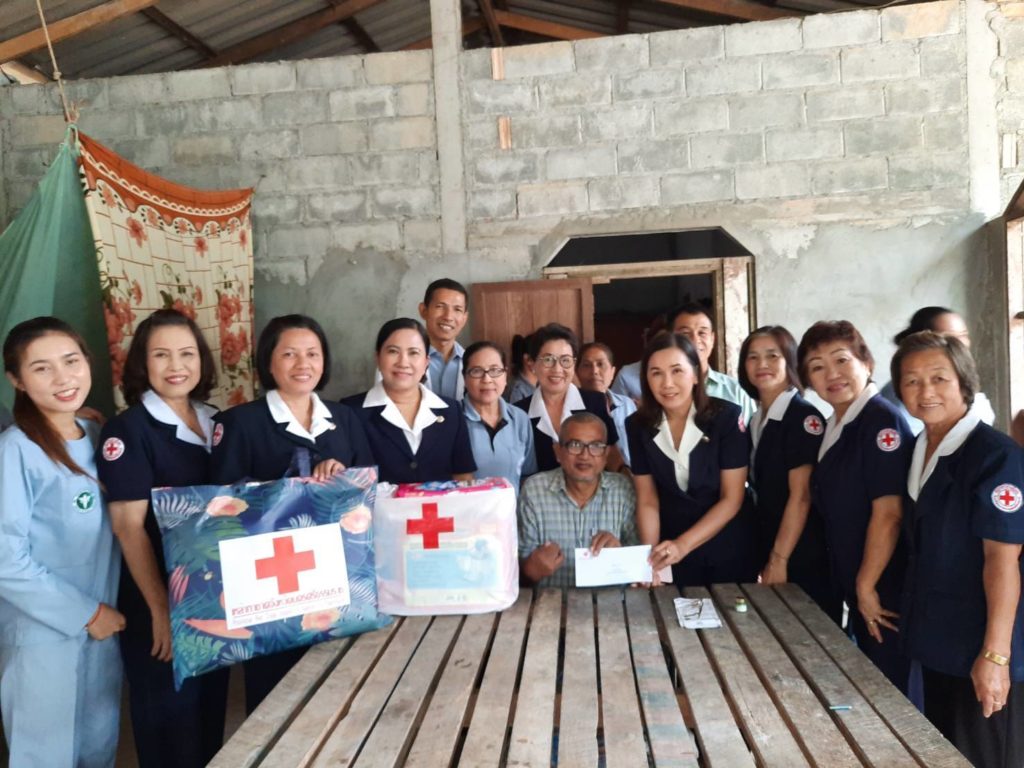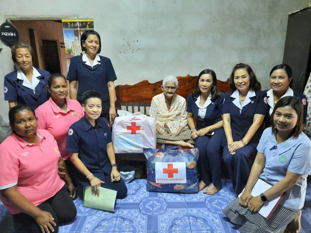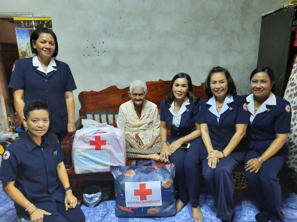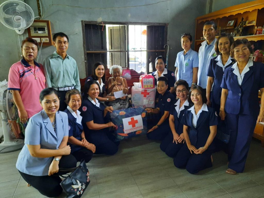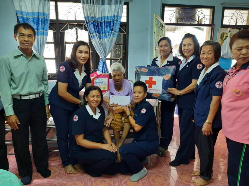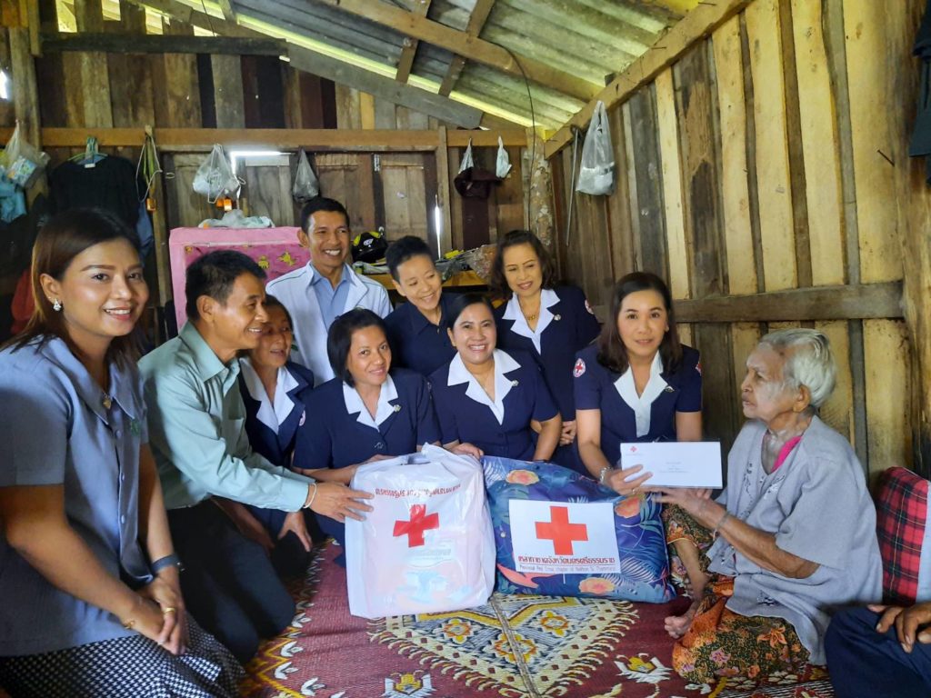 พร้อมด้วยคณะกรรมการเหล่ากาชาดจังหวัดนครศรีธรรมราชเยี่ยมและให้กำลังผู้ป่วยติดเตียงพร้อมมอบเครื่องอุปโภคบริโภคและเงินจำนวน 1,000 บาท ณ พื้นที่อำเภอนาบอน