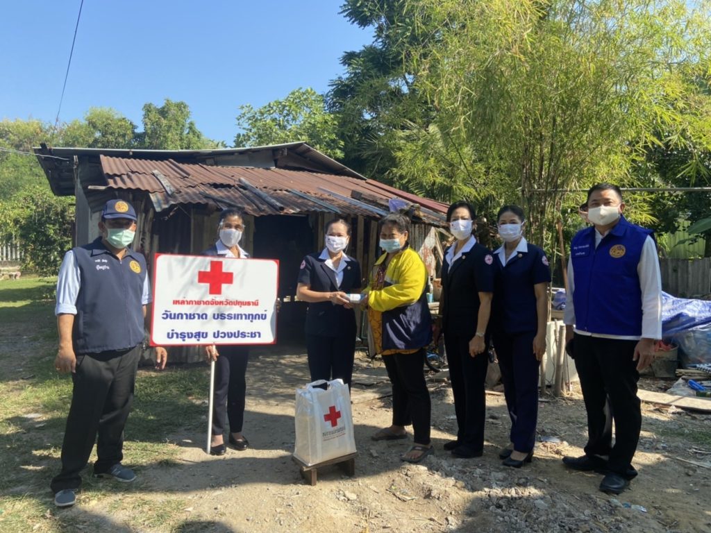 วันที่ 24 ธันวาคม 2563 นางกุลทรัพย์ ชื่นโกสุม นายกเหล่ากาชาดจังหวัดปทุมธานี มอบหมายให้นางจินดา สิงหเดช รองนายกเหล่ากาชาดจังหวัดปทุมธานี นำคณะกรรมการและสมาชิกเหล่ากาชาดจังหวัดปทุมธานี ร่วมกับนายอำเภอธัญบุรี กำนัน ผู้ใหญ่บ้าน และหน่วยงานที่เกี่ยวข้อง ลงพื้นที่มอบแว่นสายตาตามโครงการ “แว่นตาผู้สูงวัยในสมเด็จพระเทพรัตน ฯ” ซึ่งมูลนิธิสงเคราะห์เด็กของสภากาชาดไทย โดยมีสมเด็จพระกนิษฐาธิราชเจ้า กรมสมเด็จพระเทพรัตนราชสุดา ฯ สยามบรมราชกุมารี องค์ประธานคณะกรรมการอำนวยการ มูลนิธิสงเคราะห์เด็กของสภากาชาดไทย ร่วมกับห้างแว่นท็อปเจริญ ตัดแว่นตาจำนวน 400 อัน เบื้องต้นมอบแล้วจำนวน 10 อัน ในเขตพื้นที่ อ.ธัญบุรี จ.ปทุมธานี และทั้งนี้ได้ยังลงพื้นที่เยี่ยมให้ความช่วยเหลือกลุ่มเปราะบางในสังคมและผู้ยากไร้ ภายใต้กิจกรรม “วันกาชาด บรรเทาทุกข์ บำรุงสุข ปวงประชา” และเหล่ากาชาดจังหวัดปทุมธานี ได้มอบถุงยังชีพให้กับผู้เปราะบางทางสังคมและผู้ยากไร้ จำนวน 20 ชุด เบื้องต้นได้ส่งมอบแล้วจำนวน 10 ชุด อีก 10 ชุด ทางอำเภอธัญบุรี และหน่วยงานที่เกี่ยวข้องจะส่งมอบแก่ประชาชนต่อไป