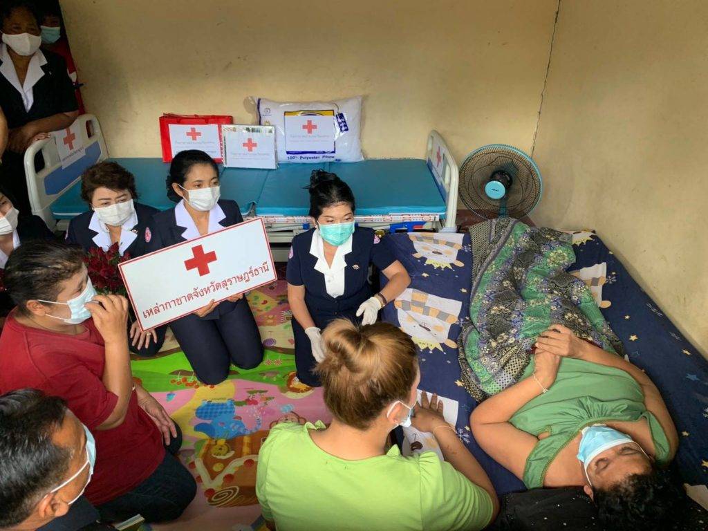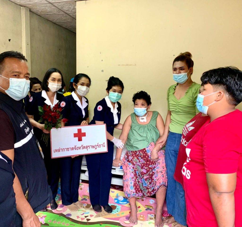 นางอุรสา จินโต นายกเหล่ากาชาดจังหวัดสุราษฎร์ธานี พร้อมด้วยคณะกรรมการสมาชิกเหล่ากาชาดจังหวัดสุราษฎร์ธานี ออกเยี่ยมผู้ป่วยติดเตียง ราย นางสาวปรียา ใจสมุทร์ อายุ 51 ปี อยู่บ้านเลขที่ 71/20 หมู่ 1 ตำบลทุ่งหลวง อำเภอเวียงสระ จังหวัดสุราษฎร์ธานี พร้อมทั้งมอบเตียงสำหรับผู้ป่วยเพื่อเป็นการบรรเทาความเดือดร้อนในการดำรงค์ชีวิต