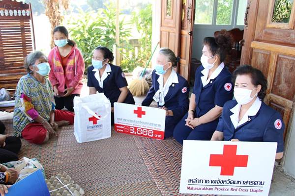 วันที่ 15 มกราคม 2563 นางพรศรี ตรงศิริ นายกเหล่ากาชาดจังหวัดมหาสารคาม พร้อมด้วยนางปรียา ศรประสิทธิ์ คณะกรรมการและสมาชิกเหล่ากาชาดจังหวัดฯ ตรวจเยี่ยมผู้ป่วยในพระราชานุเคราะห์ โครงการเยี่ยมยาม ถามไถ่ ห่วงใยผู้ป่วยและนักเรียนทุนในพระราชานุเคราะห์สมเด็จพระกนิษฐาธิราชเจ้า กรมสมเด็จพระเทพรัตนราชสุดาฯ สยามบรมราชกุมารี ประจำปี 2564 รายนางสาวหนูเพ็ญ ปันกาสี บ้านเลขที่ 2/1 ม.7 ต.เกิ้ง อ.้มือง จ.มหาสารคาม เหล่ากาชาดจังหวัดมหาสารคาม มอบเงิน 3,000 บาท พร้อมถุงยังชีพและหน้ากากอนามัย ชมรมแม่บ้านมหาดไทยจังหวัดฯ มอบถุงยังชีพ และ ไข่ไก่ 1 แผง เพื่อบรรเทาทุกข์เบื้องต้น