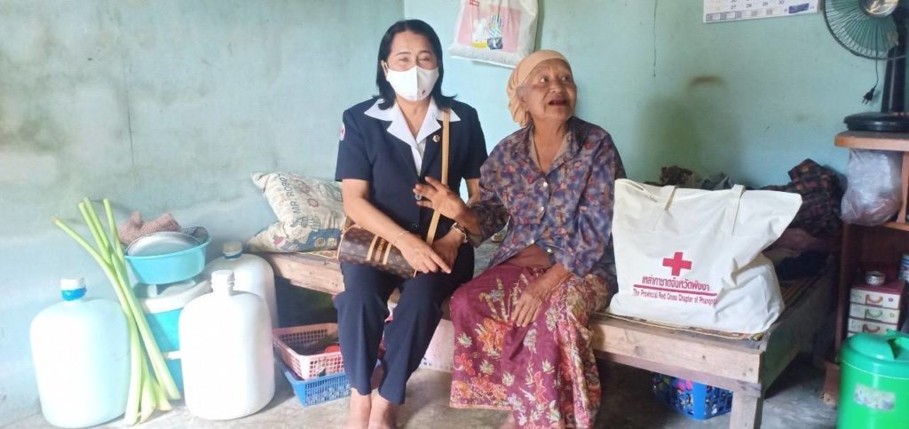 วันที่ 20 ธันวาคม 2563 นางวิภาดาทิพญพงศ์ธาดา นายกเหล่ากาชาดจังหวัดพังงา มอบหมายให้นางอุทุมพร จิตสำรวย สมาชิกเหล่ากาชาดจังหวัดพังงา อำเภอท้ายเหมือง พร้อมคณะฯ นำถุงยังชีพมอบให้กับนางม่า ชายดำ บ้านเลขที่ 20/3 หมู่ 3 อำเภอท้ายเหมือง จังหวัดพังงา ผู้ประสบปัญหาด้านสังคม พร้อมทั้งพูดคุยสอบถามความเป็นอยู่ พร้อมจะให้กำลังใจในการดำเนินชีวิต