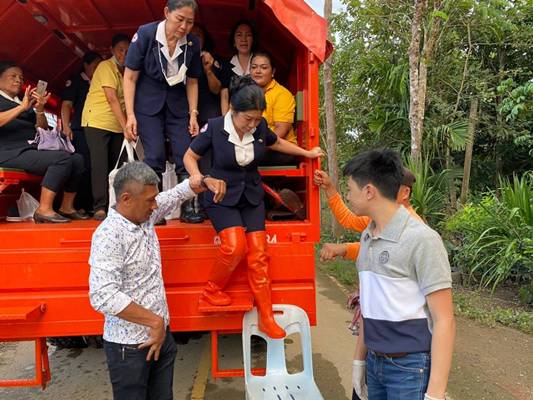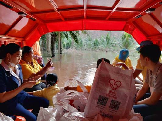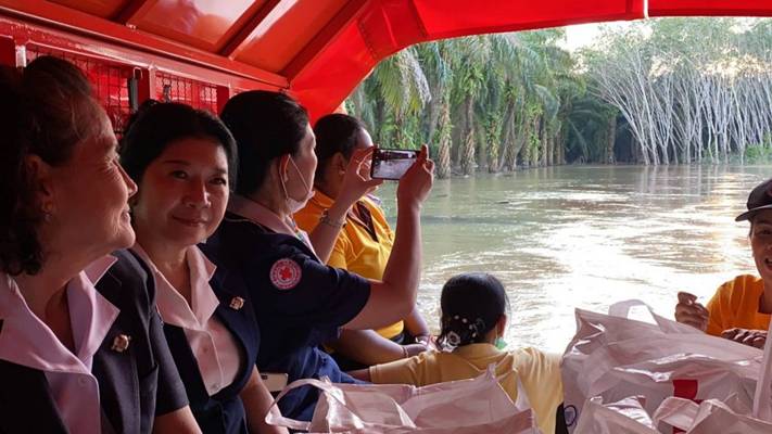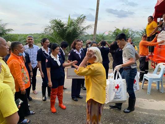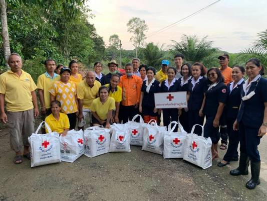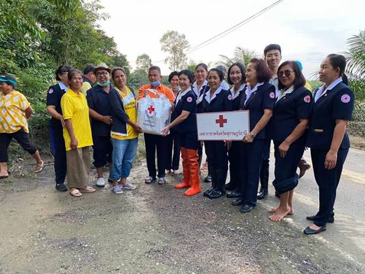 วันที่ 9 ธันวาคม 2563 นางอุรสา จินโต นายกเหล่ากาชาดจังหวัดสุราษฎร์ธานีพร้อมด้วย นางราตรี รัตนสุภา รองนายกเหล่ากาชาดจังหวัดฯกรรมการฯ และสมาชิกเหล่ากาชาดจังหวัดสุราษฎร์ธานีนายสุพัชรพงศ์ วรประดิษฐ์นายกกิ่งกาชาดอำเภอเวียงสระ/นายอำเภอเวียงสระกรรมการกิ่งกาชาดฯ และสมาชิกกิ่งกาชาดอำเภอเวียงสระพ.ต.ท.ยุทธนา บัวอินทร์ สวป.สภอ.เวียงสระกำนัน ผู้ช่วยผู้ใหญ่บ้าน และ อสม.ร่วมลงพื้นที่เพื่อมอบชุดถุงธารน้ำใจ ที่ได้รับการสนับสนุนจากสำนักงานบรรเทาทุกข์และประชานามัยพิทักษ์ สภากาชาดไทยและน้ำดื่ม ให้กับผู้ประสบอุทกภัย ในพื้นที่ หมู่ที่ 5 บ้านวังหินตำบลทุ่งหลวง อำเภอเวียงสระ จังหวัดสุราษฎร์ธานี จำนวน 17 ชุด เพื่อเป็นขวัญกำลังใจและบรรเทาทุกข์ในเบื้องต้น