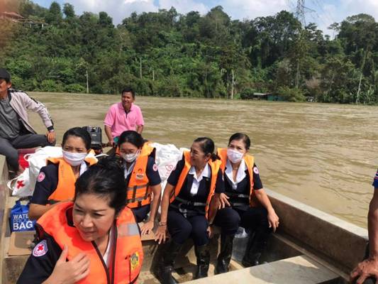 วันที่ 10 ธันวาคม 2563 นางอุรสา จินโต นายกเหล่ากาชาดจังหวัดสุราษฎร์ธานี พร้อมด้วยนางราตรี รัตนสุภา รองนายกเหล่ากาชาดจังหวัดฯนางสินีลักษณ์ จิรสัตย์สุนทร กรรมการเหล่ากาชาดจังหวัดฯที่ปรึกษาฯ และสมาชิกเหล่ากาชาดจังหวัดสุราษฎร์ธานีนางฐานิกา พรหมประสงค์ หัวหน้าสถานีกาชาดสิรินธร (สถานีกาชาดที่ 12 ทุ่งสง)นายสิทธชัย ไทยเจริญ นายอำเภอพุนพินนางดวงปาริชาต เพชรรัตน์ ปลัดอำเภอหัวหน้ากลุ่มงานบริหารงานปกครองนายประดิษฐ ทองจันทร์ นายกองค์การบริหารส่วนตำบลท่าข้ามกำนันและ อสม. ร่วมลงพื้นที่หมู่ที่ 7 บ้านคุ้งยาง ตำบลท่าข้ามเพื่อตรวจเยี่ยมชาวบ้านที่ประสบภัยน้ำท่วม และผู้พิการบ้านหน้าเขาริมแม่น้ำตาปี จำนวน 20 ครัวเรือนเพื่อมอบชุดถุงธารน้ำใจ