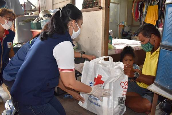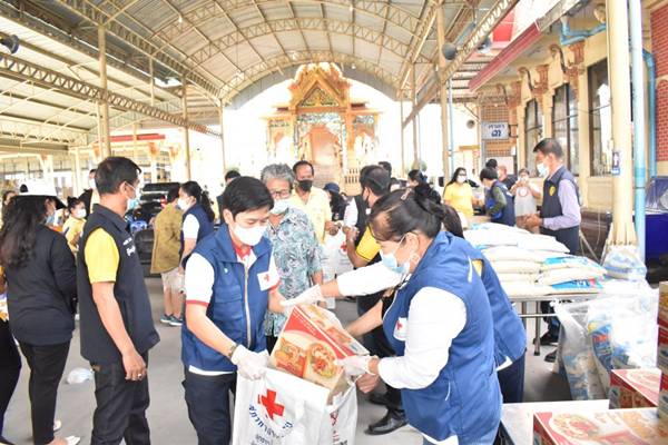 วันที่ 15 ธันวาคม 2563 นางชุติพร วิจิตร์แสงศรี นายกเหล่ากาชาดจังหวัดสมุทรสาคร พร้อมด้วยคณะกรรมการเหล่ากาชาด สมาชิกเหล่ากาชาดจังหวัดสมุทรสาคร ปลัดอำเภอ กำนัน ผู้ใหญ่บ้าน สำนักงานพัฒนาชุมชนอำเภอเมืองสมุทรสาคร อสม.ตำบลบางน้ำจืด ลงพื้นที่มอบชุดธารน้ำใจ สภากาชาดไทยจำนวน 300 ชุด/ครัวเรือน ให้แก่ครอบครัวผู้ที่ได้รับผลกระทบจากสถานการณ์การแพร่ระบาดของเชื้อไวรัสโคโรนา 2019 (COVID-19) ในพื้นที่ตำบลบางน้ำจืด ณ วัดโพธิ์แจ้ ตำบลบางน้ำจืด อำเภอเมืองสมุทรสาคร จังหวัดสมุทรสาคร ในการนี้ได้ลงเยี่ยมผู้พิการ และมอบชุดธารน้ำใจ สภากาชาดไทย จำนวน 3 ราย