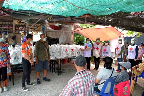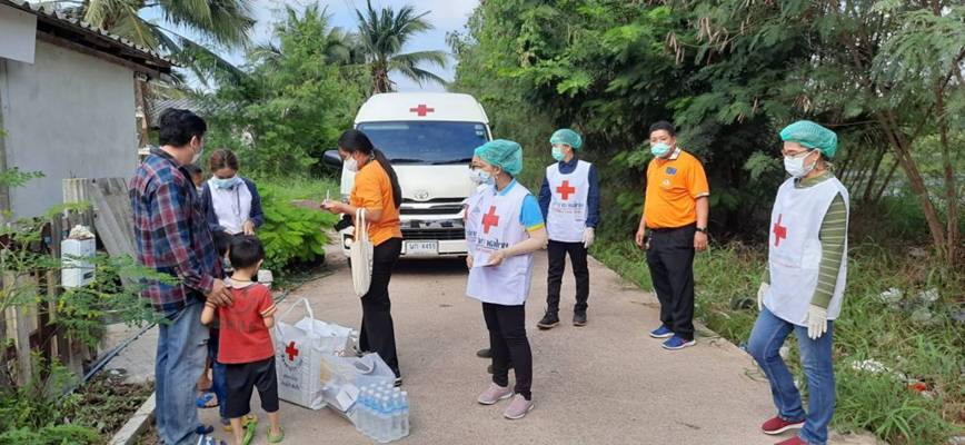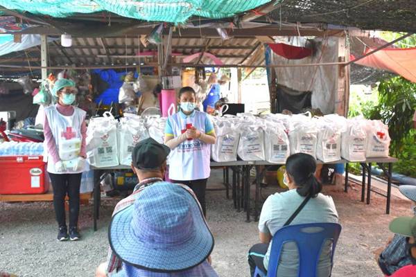 วันที่ 24 ธันวาคม 2563 นางชุติพร วิจิตร์แสงศรี นายกเหล่ากาชาดจังหวัดสมุทรสาคร พร้อมกรรมการ และสมาชิกเหล่ากาชาดฯ ลงพื้นที่มอบชุดธารน้ำใจให้กับราษฎรผู้ได้รับผลกระทบจาก COVID-19 จำนวน 50 ครัวเรือน พร้อมกันนี้ได้ลงพื้นที่เยี่ยมครัวเรือนผู้ได้รับผลกระทบจากการแพร่ระบาดของ COVID-19 จำนวน 1 ราย มอบชุดธารน้ำใจ นม UHT น้ำดื่ม และเงินช่วยเหลือในเบื้องต้น ณ พื้นที่ตำบลหนองบัว และตำบลยกกระบัตร อำเภอบ้านแพ้ว จังหวัดสมุทรสาคร