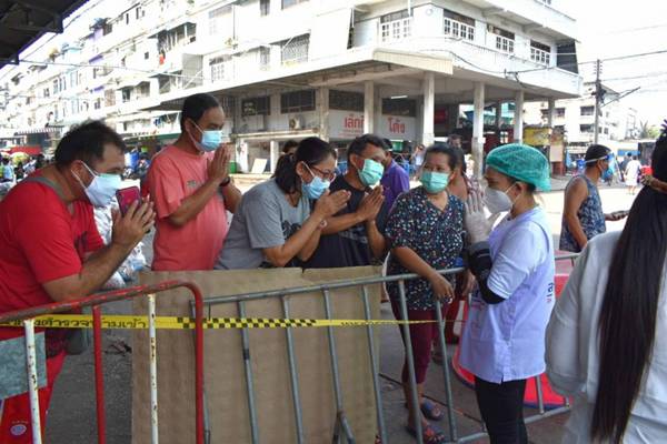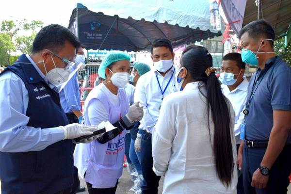 – โดย นายสุรศักดิ์ ผลยังส่ง รองผู้ว่าราชการจังหวัดสมุทรสาคร ขึ้นกล่าวสร้างความเข้าใจและเน้นย้ำในเรื่องการให้ความดูแลผู้อยู่ในเขต Lock Down ว่าจังหวัดสมุทรสาครจะปฏิบัติหน้าที่อย่างเต็มความสามารถในทุกภาคส่วน ณ ตลาดกลางกุ้ง อำเภอเมืองฯ จังหวัดสมุทรสาคร