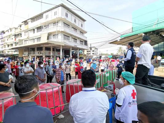 วันที่ 25 ธันวาคม 2563 นางชุติพร วิจิตร์แสงศรี นายกเหล่ากาชาดจังหวัดสมุทรสาคร พร้อมกรรมการและสมาชิกเหล่ากาชาดฯ ลงพื้นที่ให้กำลังใจแรงงานข้ามชาติและชาวไทยในพื้นที่ Lock Down พร้อมชี้แจงทำความเข้าใจกับตัวแทนจากสถานฑูตเมียนมาร์ ในกรณีการจำกัดพื้นที่กลุ่มเสี่ยง รวมถึงนำหน้ากากอนามัย N95, เสื้อกันฝน, ชุด PPE และปลั๊กพ่วง มอบให้กับเจ้าหน้าที่ผู้ปฏิบัติงานในพื้นที่ เพื่อให้การทำงานเกิดประสิทธิภาพมากขึ้น