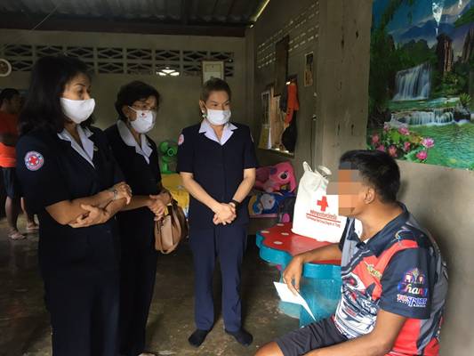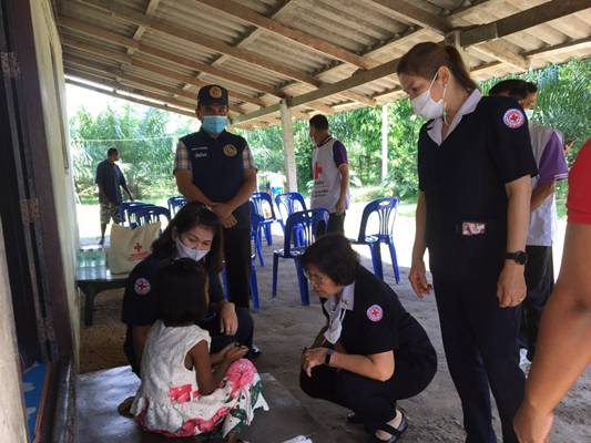 ในการนี้ เหล่ากาชาดจังหวัดตรังมอบถุงยังชีพ และเงินช่วยเหลือเพื่อช่วยเหลือในเบื้องต้น