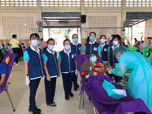 วันที่ 15 มกราคม 2564 นางศลิษา ภิรมย์รัตน์ นายกเหล่ากาชาดจังหวัดตาก พร้อมด้วย กรรมการ/สมาชิกเหล่ากาชาดจังหวัดตาก และโรงพยาบาลสมเด็จพระเจ้าตากสินมหาราช ออกหน่วยรับบริจาคโลหิต ดวงตา และอวัยวะ ณ กองพันทหารราบที่ 3 กรมทหารราบที่ 14 เนื่องในวันที่ 18 มกราคม ของทุกปี เป็นวันกองทัพไทย- ผู้ลงทะเบียนบริจาคโลหิตจำนวน 91 ราย- ได้รับโลหิตจำนวน 64 ราย 22,400 ซี.ซี.