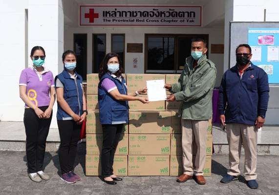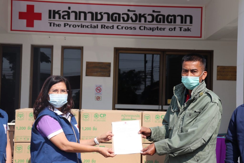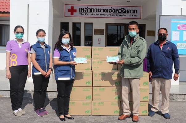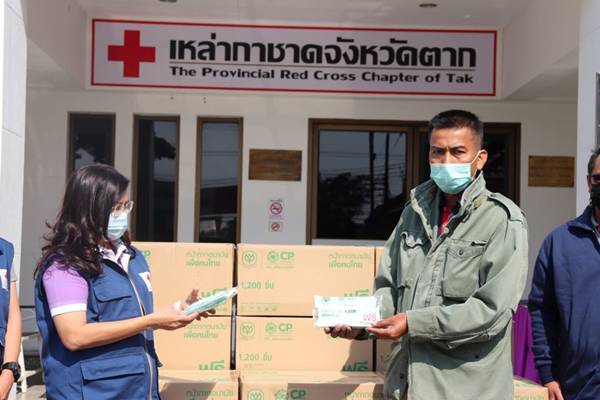 วันที่ 20 มกราคม 2564 ณ บริเวณหน้าสำนักงานเหล่ากาชาดจังหวัดตาก นางศลิษา ภิรมย์รัตน์ นายกเหล่ากาชาดจังหวัดตาก รับมอบหน้ากากอนามัยทางการแพทย์ Surgical mask จำนวน 30,000 ชิ้น จาก สำนักงานบริหารกิจการเหล่ากาชาด และสำนักงานบรรเทาทุกข์และประชานามัยพิทักษ์ สภากาชาดไทย โดยได้รับการสนับสนุนจาก บริษัท เครือเจริญโภคภัณฑ์ จำกัด และคณะโดยเหล่ากาชาดจังหวัดตาก จะส่งมอบให้โรงพยาบาล ที่อยู่ในพื้นที่ควบคุมเข้มข้นสูงสุด เพื่อไว้ใช้ในการป้องกันการแพร่ระบาดของโรคไวรัสโควิด–19
