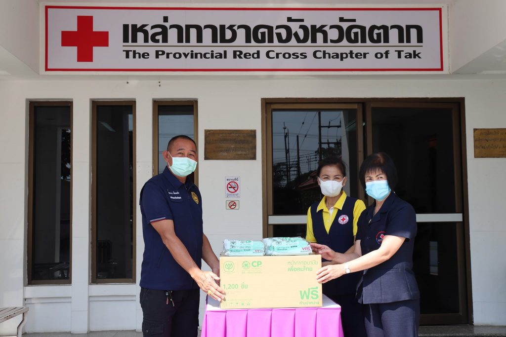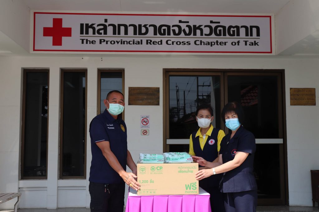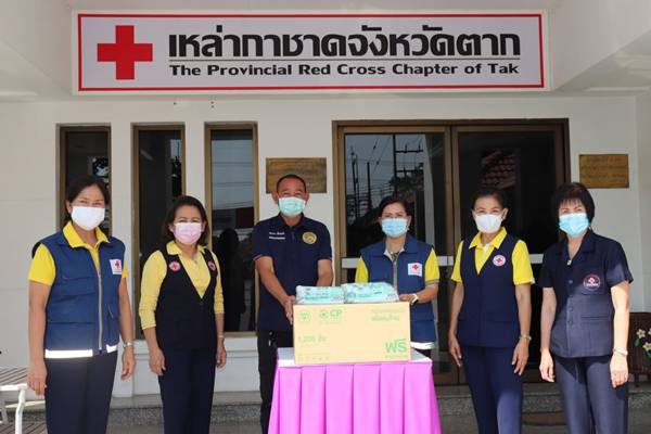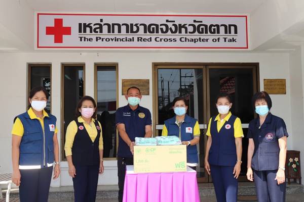 วันที่ 21 มกราคม 2564 ณ บริเวณหน้าสำนักงานเหล่ากาชาดจังหวัดตาก นางศลิษา ภิรมย์รัตน์ นายกเหล่ากาชาดจังหวัดตาก พร้อมด้วยนางจรูญลักษณ์ โชติมานนท์ รองนายกเหล่ากาชาดจังหวัดตาก นางสาวนฤมล พรมวาหัวหน้าสถานีกาชาดเทพรัตน์ (สถานีกาชาดที่ 13 จังหวัดตาก) และกรรมการเหล่ากาชาดจังหวัดตาก ร่วมมอบหน้ากากอนามัย Surgical Mask จำนวน 1,200 ชิ้น ให้แก่อำเภอแม่ระมาด โดยมี เจ้าหน้าที่อส.อำเภอแม่ระมาด รับมอบ สำหรับนำไปแจกจ่ายให้กับผู้ปฏิบัติงานหน้าที่เสี่ยงภัย ผู้ที่ทำหน้าที่ตรวจคัดกรองวัดอุณหภูมิ ผู้ที่ดูแลผู้ป่วยติดเตียงที่บ้าน ตลอดจนประชาชนที่เสี่ยงต่อการติดเชื้อในพื้นที่ เพื่อใช้ป้องกันการแพร่ระบาดในสถานการณ์ของโรคติดเชื้อโควิด-19 ด้วย เหล่ากาชาดจังหวัดตากได้รับมอบหน้ากากอนามัย Surgical Mask จากสำนักงานบริหารกิจการเหล่ากาชาด และสำนักงานบรรเทาทุกข์และประชานามัยพิทักษ์ สภากาชาดไทย โดยได้รับการสนับสนุนจาก บริษัท เครือเจริญโภคภัณฑ์ จำกัด และคณะ