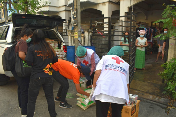 วันที่ 14 มกราคม 2564 เวลา นางชุติพร วิจิตร์แสงศรี นายกเหล่ากาชาดจังหวัดสมุทรสาคร มอบหมายให้นางสาวสุวิมล เมชบุตร นางสมศิริ ด้วงสำรวย กรรมการและสมาชิกเหล่ากาชาดฯ ร่วมกับมูลนิธิรักษ์ไทย ลงพื้นที่มอบชุดธารน้ำใจ เครื่องอุปโภคบริโภค พร้อมไข่ไก่สด ให้กับแรงงานข้ามชาติในเขตพื้นที่อำเภอเมืองฯ ผู้ได้รับผลกระทบจากสถานการณ์แพร่ระบาดของ COVID-19 จำนวนทั้งสิ้น 155 ราย โดยได้รับการสนับสนุนสิ่งของยังชีพเพิ่มเติมจากศูนย์รับบริจาคเพื่อช่วยเหลือผู้ได้รับผลกระทบจากสถานการณ์แพร่ระบาดของโรคติดเชื้อไวรัส COVID-19 จังหวัดสมุทรสาคร ณ เขตพื้นที่อำเภอเมืองฯ จังหวัดสมุทรสาคร