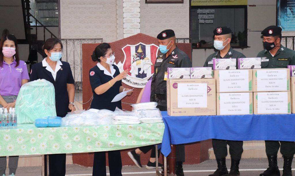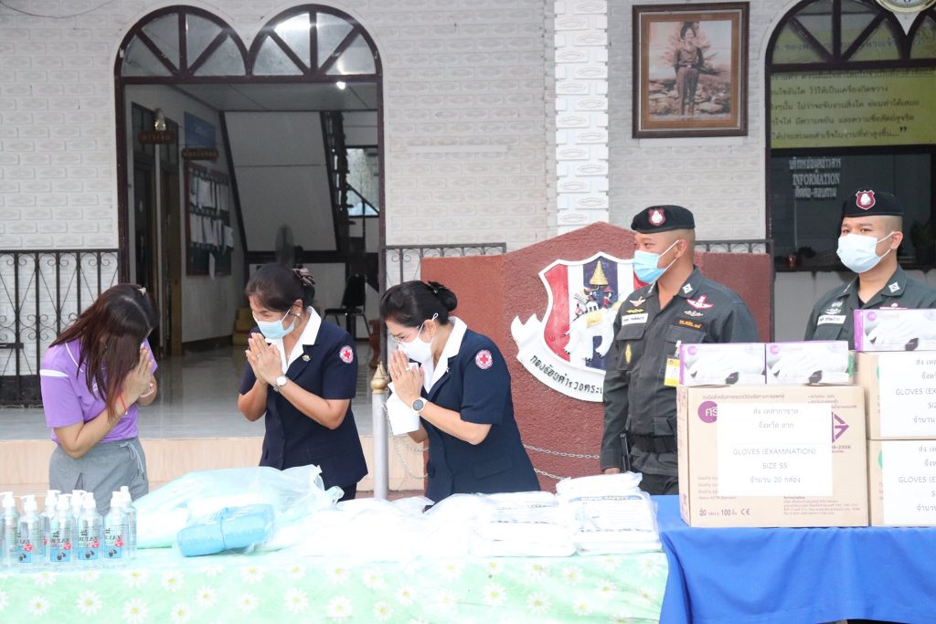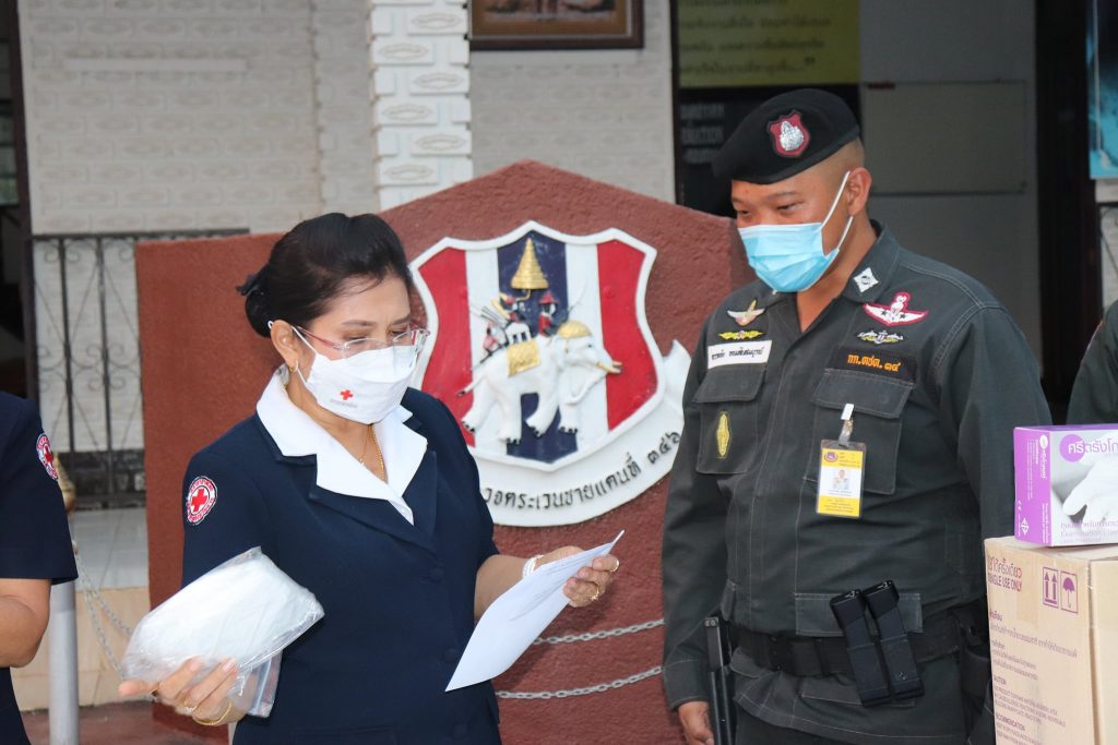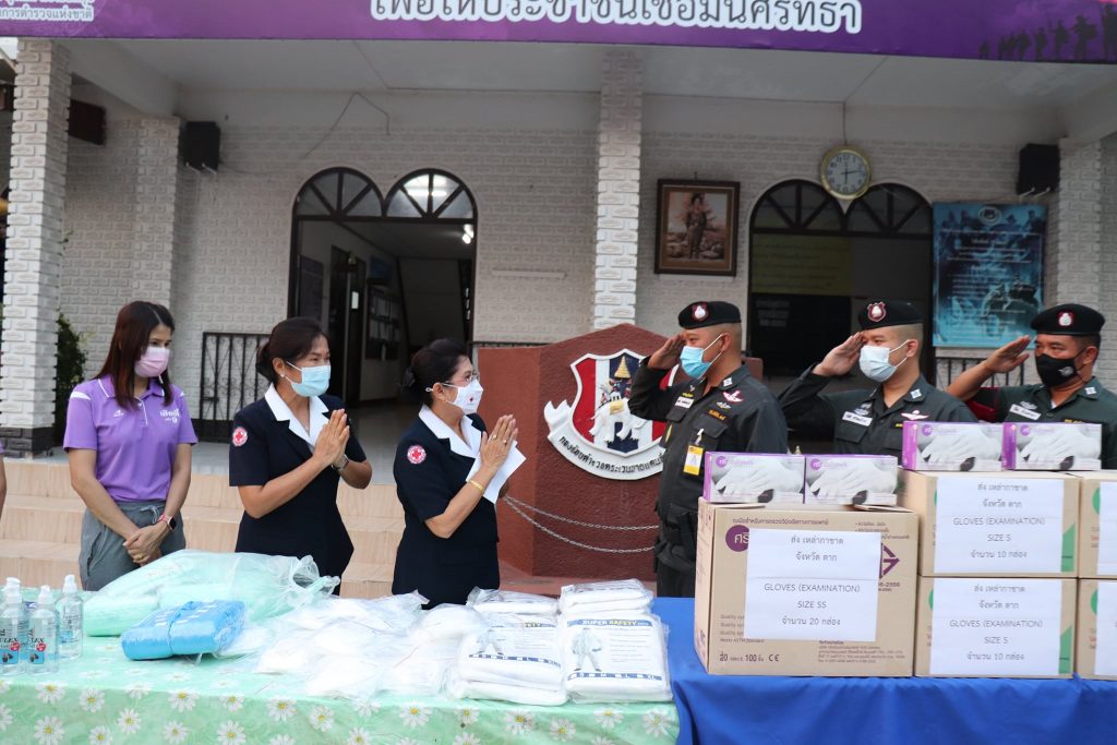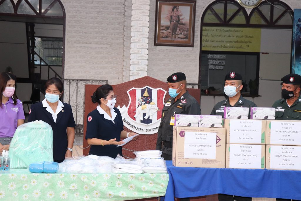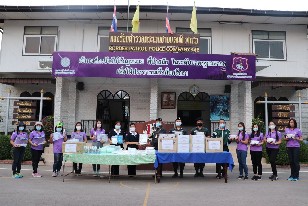 วันที่ 4 กุมภาพันธ์ 2564 ที่กองร้อยตำรวจตระเวณชายแดน 346 นางศลิษา ภิรมย์รัตน์ นายกเหล่ากาชาดจังหวัดตาก พร้อมด้วยนางจรูญลักษณ์ โชติมานนท์ รองนายกเหล่ากาชาดจังหวัดตาก ร่วมกันมอบวัสดุอุปกรณ์ทางการแพทย์และสิ่งของจำเป็นในการป้องกันโควิด-19 ให้แก่กองร้อยตำรวจตระเวณชายแดน 346 โดยมี ผู้บังคับกองร้อยตำรวจตระเวณชายแดน 346 พร้อมคณะ รับมอบ โดยครั้งนี้ เหล่ากาชาดจังหวัดตากและคณะฯ ได้นำอุปกรณ์ทางการแพทย์และสิ่งของจำเป็นในการป้องกันโควิด-19 มอบให้แก่กองร้อยตำรวจตระเวนชายแดน 346 ประกอบด้วย หน้ากากอนามัย N95 จำนวน 200 ชิ้น Face Chield จำนวน 50 ชิ้น ถุงคลุมรองเท้าแบบใช้แล้วทิ้ง (Disposable Shoe Cover) จำนวน 50 คู่ ถุงมือตรวจโรค (Examination gloves) จำนวน 8,000 ชิ้น เสื้อกาวน์ Disp.Isolation coverall non-sterile จำนวน 20 ชุด แอลกอฮอล์เจล ขนาด 450 ml. จำนวน 10 ขวด และหน้ากากอนามัย (Surgical mask) จำนวน 300 ชิ้น สำหรับนำไปใช้ใน การปฏิบัติงานของเจ้าหน้าที่และบุคลากรที่ปฏิบัติหน้าที่เสี่ยงภัย ผู้ที่ทำหน้าที่ตรวจคัดกรองวัดอุณหภูมิ เพื่อใช้ในการป้องกันและควบคุมการแพร่ระบาดของโรคติดเชื้อไวรัสโควิด-19
