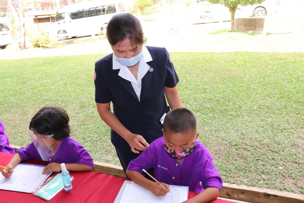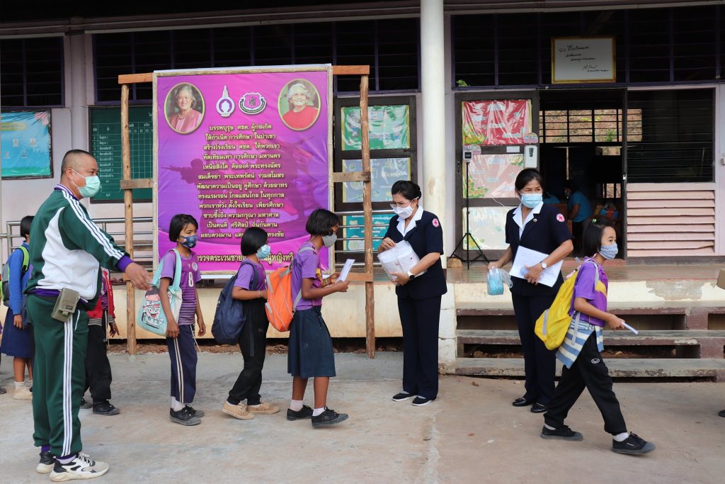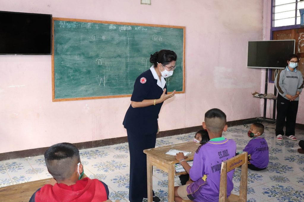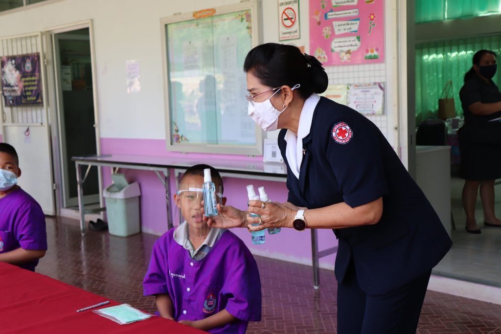 ในโอกาสนี้ นายกเหล่ากาชาดได้เสนอแนวทางการแก้ปัญหาการอ่านไม่ออก เขียนไม่ได้ โดยการใช้สื่อที่หลากหลายกระตุ้นความสนใจให้นักเรียนเกิดการเรียนรู้ พร้อมกับให้กำลังใจคุณครู เพื่อช่วยเหลือนักเรียนให้อ่านออกเขียนได้ และได้มอบหน้ากากอนามัยเจลแอกอฮอล์ พร้อมถุงยังชีพให้กับนักเรียนและคณะครู