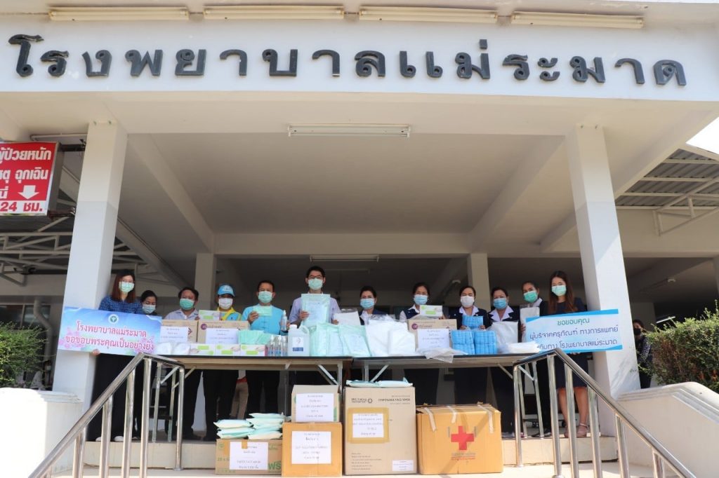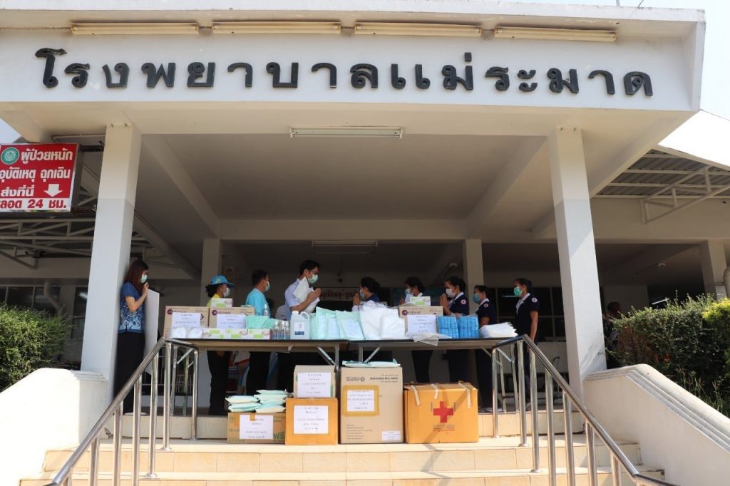 วันที่ 5 กุมภาพันธ์ 2564 ที่โรงพยาบาลแม่ระมาด นางศลิษา ภิรมย์รัตน์ นายกเหล่ากาชาดจังหวัดตาก พร้อมด้วยนางจรูญลักษณ์ โชติมานนท์ รองนายกเหล่ากาชาดจังหวัดตาก นายเลิศศักดิ์ ทับผึ้ง นายอำเภอแม่ระมาด นางโสภา ทับผึ้ง นายกกิ่งกาชาดอำเภอแม่ระมาด ร่วมกันมอบวัสดุอุปกรณ์ทางการแพทย์และสิ่งของจำเป็นในการป้องกันโควิด-19 ให้แก่โรงพยาบาลแม่ระมาด โดยมี นายแพทย์สุธา ภัทรกิจรุ่งเรือง นายแพทย์ชำนาญการพิเศษ ปฏิบัติราชการแทนผู้อำนวยการโรงพยาบาลแม่ระมาด พร้อมคณะ รับมอบ โดยครั้งนี้ เหล่ากาชาดจังหวัดตาก และคณะฯ ได้นำอุปกรณ์ทางการแพทย์และสิ่งของจำเป็นในการป้องกันโควิด-19 มอบให้แก่โรงพยาบาลแม่ระมาด ประกอบด้วย หน้ากากอนามัย N95 จำนวน 500 ชิ้น , Face Chield จำนวน 100 ชิ้น , ถุงคลุมรองเท้าแบบใช้แล้วทิ้ง (Disposable Shoe Cover) จำนวน 150 คู่ , ถุงมือตรวจโรค (Examination gloves) จำนวน 12,000 ชิ้น , เสื้อกาวน์ใช้แล้วทิ้ง (Disp.Isolation coverall sterile) จำนวน 100 ชุด , เสื้อกาวน์ Disp.Isolation coverall non-sterile จำนวน 50 ชุด แอลกอฮอล์เจล ขนาด 450 ml. จำนวน 5 ขวด ,แอลกอฮอล์เจล ขนาด 5,000 ml. จำนวน 1 แกลลอน และหน้ากากอนามัย (Surgical mask) จำนวน 500 ชิ้น เพื่อให้นำไปใช้ในการปฏิบัติของเจ้าหน้าที่และบุคลากรโรงพยาบาลแม่ระมาด ในการป้องกันและควบคุมการแพร่ระบาดของโรคติดเชื้อไวรัสโควิด-19 ต่อไป