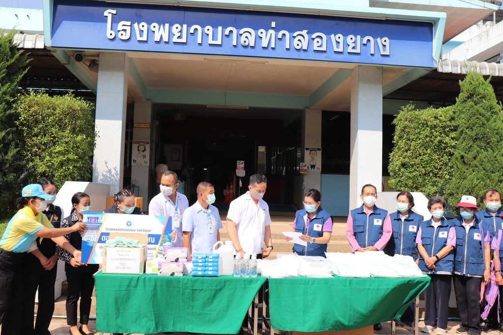 วันที่ 9 กุมภาพันธ์ 2564 ที่โรงพยาบาลท่าสองยาง อำเภอท่าสองยาง จังหวัดตาก นางศลิษา ภิรมย์รัตน์ นายกเหล่ากาชาดจังหวัดตาก พร้อมด้วยนายยงยุทธ สุขศิริ นายอำเภอท่าสองยาง/นายกกิ่งกาชาดอำเภอท่าสองยาง และกรรมการ/สมาชิกกิ่งกาชาดอำเภอท่าสองยาง ร่วมกันมอบวัสดุอุปกรณ์ทางการแพทย์และสิ่งของจำเป็นในการป้องกันโควิด-19 ให้แก่โรงพยาบาลท่าสองยาง โดยมี นายแพทย์ธวัชชัย ยิ่งทวีศักดิ์ ผู้อำนวยการโรงพยาบาลท่าสองยาง พร้อมคณะ รับมอบ
