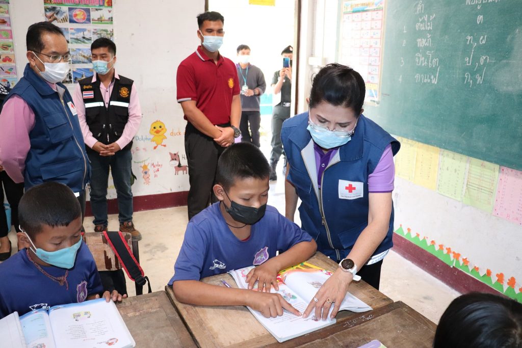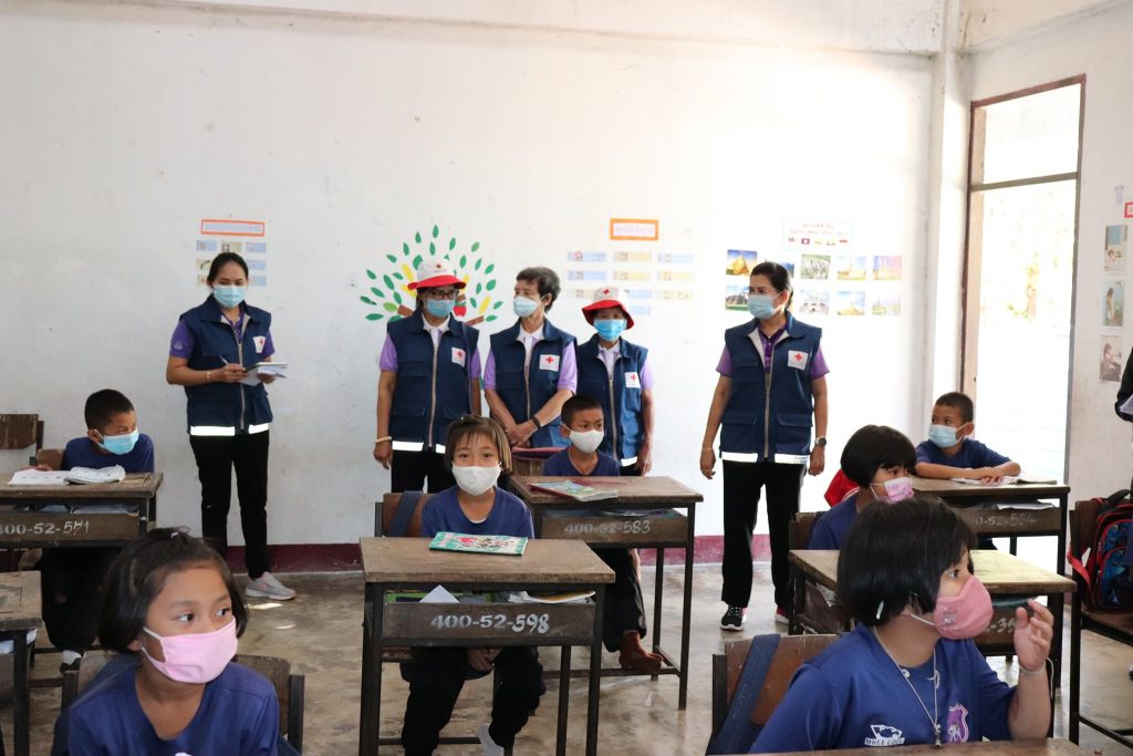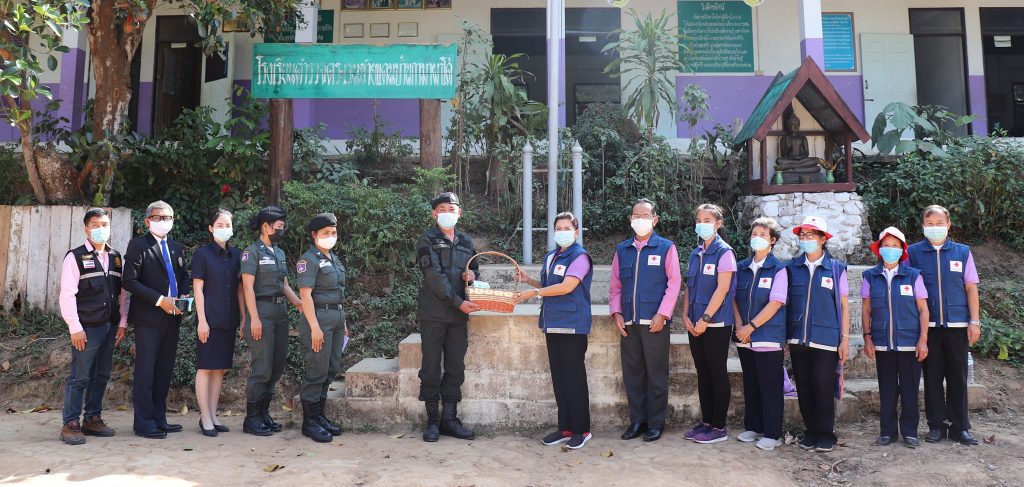 วันที่ 9 กุมภาพันธ์ 2564 นางศลิษา ภิรมย์รัตน์ นายกเหล่ากาชาดจังหวัดตาก พร้อมด้วย นายยงยุทธ สุขศิริ นายอำเภอท่าสองยาง/นายกกิ่งกาชาดอำเภอท่าสองยาง รองศึกษาธิการจังหวัด ศึกษานิเทศติดตามและประเมินผล เจ้าหน้าที่บริหารและคณะ ได้ลงพื้นที่เพื่อให้กำลังใจและติดตาม การพัฒนาการอ่าน – การเขียน ตามโครงการส่งเสริมและสนับสนุนพัฒนาการเรียนรู้ของนักเรียนและเยาวชนในถิ่นทุรกันดารเพื่อดำเนินงานตามพระราชดำริ สมเด็จพระกนิษฐาธิราชเจ้า กรมสมเด็จพระเทพรัตนราชสุดาฯ สยามบรมราชกุมารี อุปนายิกาผู้อำนวยการสภากาชาดไทย ณ โรงเรียนตำรวจตระเวนชายแดนกามาผาโด้ อำเภอท่าสองยาง จังหวัดตาก พร้อมกันนี้ นายกเหล่ากาชาดฯ ได้เสนอแนวทางการแก้ปัญหาการอ่านไม่ออก เขียนไม่ได้ โดยการใช้สื่อที่หลากหลายกระตุ้นความสนใจให้นักเรียนเกิดการเรียนรู้ พร้อมขอบคุณและให้กำลังใจคณะครู ทุกคน ที่จะต้องเสียสละและอดทน เพื่อช่วยสอนเสริมให้นักเรียนในถื่นทุรกันดารให้อ่านออก-เขียนได้ ในการนี้ได้มอบหน้ากากอนามัย Surgical Mask และ แอลกอฮอล์สเปรย์ เพื่อใช้ในการป้องกันและควบคุมการแพร่ระบาดในสถานการณ์โควิด-19 ต่อไป
