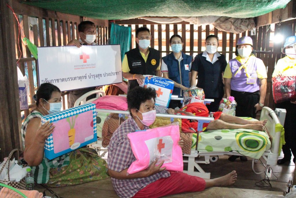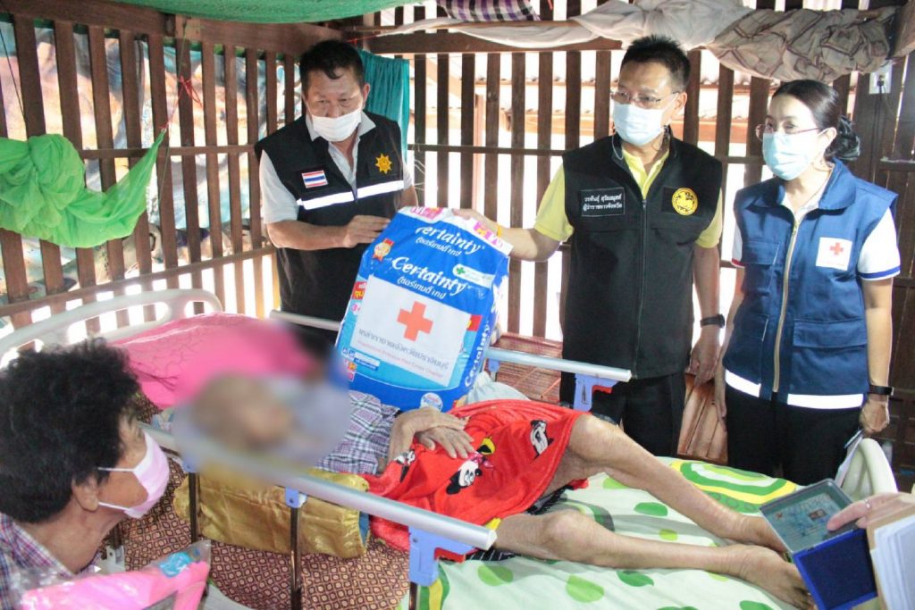 โดยเหล่ากาชาดจังหวัดปราจีนบุรี ได้มอบเงินช่วยเหลือ จำนวน 1,000 บาท เครื่องอุปโภค – บริโภค จำนวน 1 ชุด มุ้ง จำนวน 1 หลัง แพมเพิส จำนวน 1 แพค ผ้าขนหนู จำนวน 1 ผืน ให้กับผู้สูงอายุ ผู้ป่วยติดเตียง ผู้พิการ ยากไร้ ขาดแคลน เพื่อบรรเทาความเดือดร้อนเบื้องต้นพร้อมทั้งกล่าวให้กำลังใจ