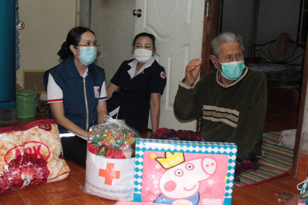 วันที่ 21 มกราคม 2564 นางมัทนา สุวัณณุสส์ นายกเหล่ากาชาดจังหวัดปราจีนบุรี พร้อมด้วยคณะกรรมการเหล่ากาชาดจังหวัดปราจีนบุรี นางสาวจิรภา ทองศิริ นายอำเภอศรีมโหสถ พัฒนาสังคมและความมั่นคงของมนุษย์จังหวัดปราจีนบุรี จิตอาสาพระราชทาน ปลัดอำเภอศรีมโหสถ สาธารณสุขอำเภอ อสม. ร่วมลงพื้นที่เยี่ยมบ้านผู้สูงอายุ ที่ยากไร้ ขาดแคลน ราย นายสวน ศรีพรมมา อายุ 92 ปี บ้านเลขที่ 113 หมู่ 5 ต.โคกปีบ อ.ศรีมโหสถ จ.ปราจีนบุรี ตามโครงการ “วันกาชาดบรรเทาทุกข์ บำรุงสุข ปวงประชา” โดยเหล่ากาชาดจังหวัดปราจีนบุรี ได้มอบเครื่องอุปโภค – บริโภค จำนวน 1 ชุด มุ้ง จำนวน 1 หลัง ผ้าขนหนู จำนวน 1 ผืน ให้กับผู้สูงอายุ ยากไร้ ขาดแคลน เพื่อบรรเทาความเดือดร้อนเบื้องต้นพร้อมทั้งกล่าวให้กำลังใจ