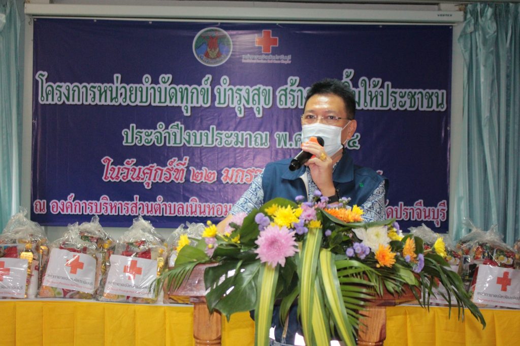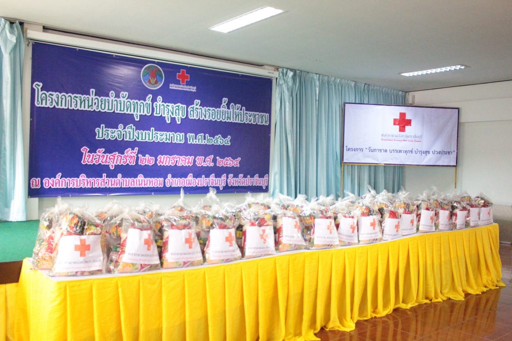 วันที่ 22 มกราคม 2564 นายวรพันธุ์ สุวัณณุสส์ ผู้ว่าราชการจังหวัดปราจีนบุรี/ประธานที่ปรึกษาคณะกรรมการเหล่าจังหวัดปราจีนบุรี พร้อมด้วยนางมัทนา สุวัณณุสส์ นายกเหล่ากาชาดจังหวัดปราจีนบุรี นายรณรงค์ นครจินดา รองผู้ว่าราชการจังหวัดปราจีนบุรี/รองนายกเหล่ากาชาดจังหวัดปราจีนบุรี รอง ผอ.รมน.จ.ปจ.(ท) นายพงษ์สิทธิ์ เนื่องจำนงค์ ปลัดจังหวัดปราจีนบุรี/เลขานุการเหล่ากาชาดจังหวัดปราจีนบุรี นางจารุณี วายลม หัวหน้าสำนักงานจังหวัดปราจีนบุรี นายอำเภอเมืองปราจีนบุรี สมาชิกเหล่ากาชาดจังหวัดปราจีนบุรี และผู้นำท้องที่ท้องถิ่น มอบถุงยังชีพให้กับผู้ยากไร้ จำนวน 50 ราย ตามโครงการ วันกาชาดบรรเทาทุกข์ บำรุงสุข ปวงประชา ในการออกหน่วย โครงการ “หน่วยบำบัดทุกข์ บำรุงสุข สร้างรอยยิ้มให้กับประชาชน” ณ หอประชุมองค์การบริหารส่วนตำบลเนินหอม อ.เมืองปราจีนบุรี จ.ปราจีนบุรี