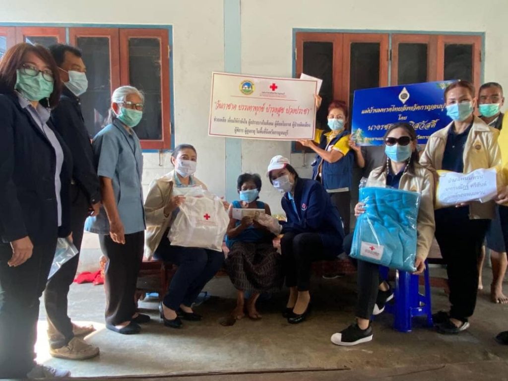 วันที่ 15 กุมภาพันธ์ 2564 นางรชยา ภูมิสวัสดิ์ นายกเหล่ากาชาดจังหวัดกาญจนบุรี นางสาวกิตติยา จึงรุ่งเจริญกิจ รองนายกเหล่ากาชาดจังหวัดกาญจนบุรี นางพวงพยอม ศรีสันต์ ผู้ช่วยนายกเหล่ากาชาดจังหวัดกาญจนบุรี แพทย์/พยาบาล/หน.หน่วยงานปฐมภูมิ รพ.เจ้าคุณไพบูลย์พนมทวน ผู้ใหญ่บ้าน ผู้ช่วยผู้ใหญ่บ้าน อสม. เจ้าหน้าที่อำเภอพนมทวน และกรรมการเหล่ากาชาดจังหวัด/สมาชิกแม่บ้านมหาดไทยจังหวัดกาญจนบุรี ได้ร่วมลงพื้นที่ตรวจเยี่ยมให้กำลังใจ ผู้ป่วยติดเตียง ผู้สูงอายุ ผู้พิการยากไร้ ต้องการความช่วยเหลือ จำนวน 11 ราย ในเขตพื้นที่ หมู่ 1,3 บ้านพนมทวน หมู่ 4 บ้านดอนงิ้ว ตำบลพนมทวน และ หมู่ 5 บ้านหนองแก ตำบลดอนเจดีย์อำเภอพนมทวน จังหวัดกาญจนบุรี โดยเหล่ากาชาดจังหวัดกาญจนบุรี ได้มอบเครื่องอุปโภค – บริโภค จำนวน 11 ชุด ผ้าห่ม 11 ผืน และเงินช่วยเหลือเบื้องต้น 11 รายๆละ 3,000 บาท รวมเป็นเงิน 33,000 บาท