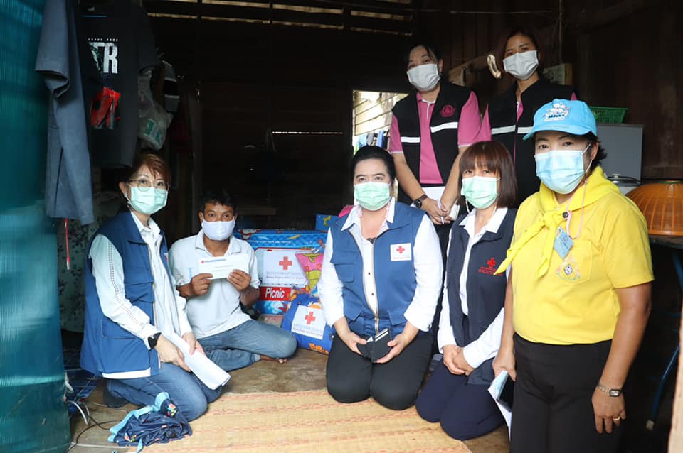 ในการนี้เหล่ากาชาดจังหวัดระยอง มอบเงินช่วยเหลือรายละ 3,000 บาท พร้อมถุงยังชีพ ผ้าขนหนู ที่นอน มุ้ง และของใช้ที่จำเป็น