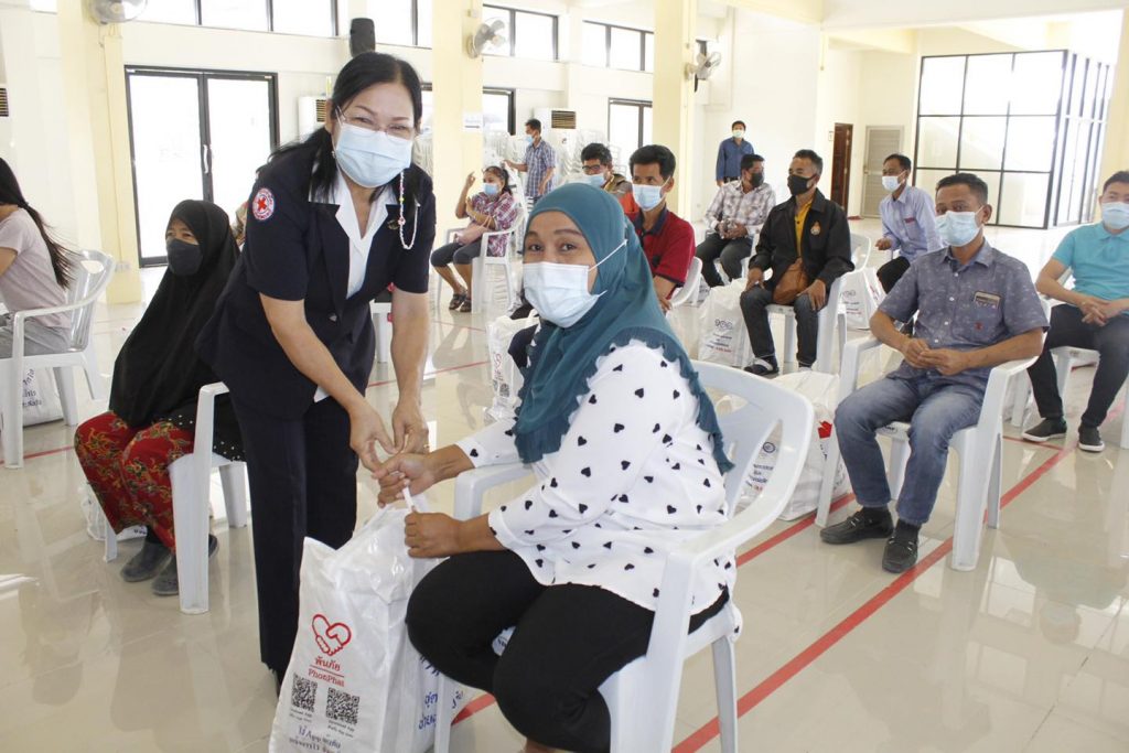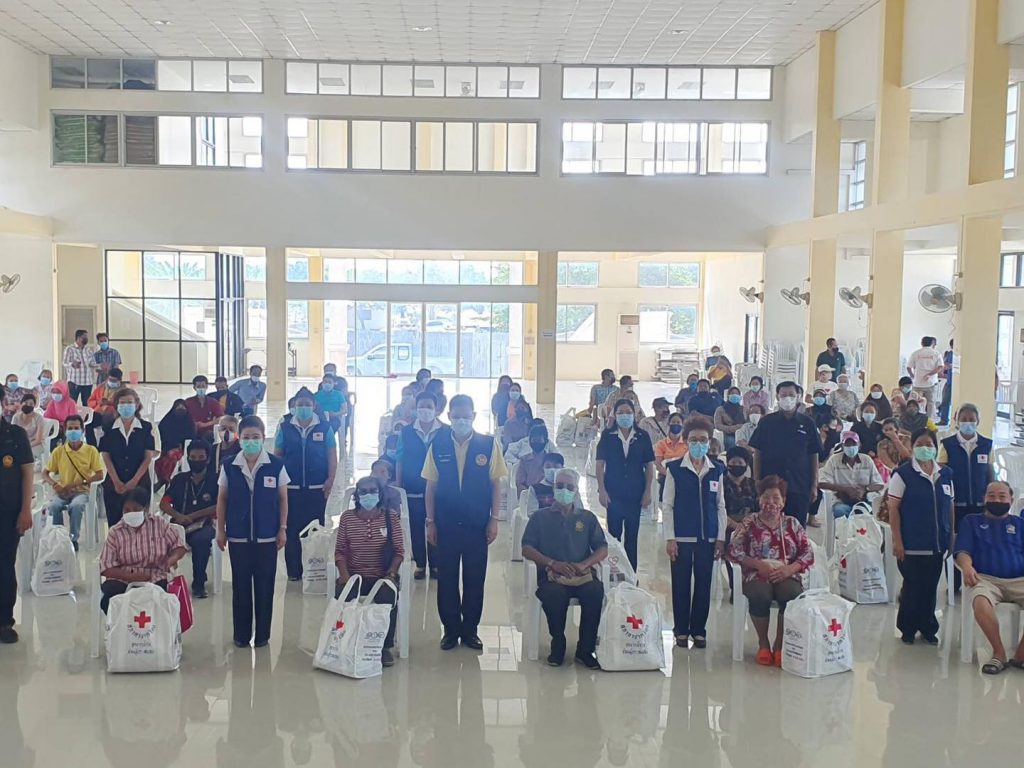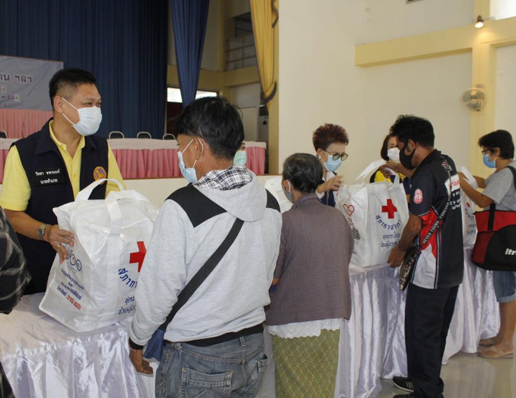 วันที่ 4 กุมภาพันธ์ 2564 แพทย์หญิง สุวรรณา ไชยชุมศักดิ์ นายกเหล่ากาชาดจังหวัดนนทบุรี นางจิตรา ธนเดชากุล รองนายกเหล่ากาชาดฯ นางพิกุล ผลบุญ ผู้ช่วยนายกเหล่ากาชาดฯ กรรมการและสมาชิกเหล่ากาชาดฯ พร้อมด้วย นายวิทยา ชพานนท์ นายกกิ่งกาชาดอำเภอบางบัวทอง ทีมกิ่งกาชาดอำเภอบางบัวทอง ปลัดอำเภอ เสมียนตราอำเภอ และกำนันผู้ใหญ่บ้าน ร่วมมอบชุดธารน้ำใจกู้ชีวิตผ่าวิกฤตโควิค -19 จำนวน 120 ชุด ให้แก่ผู้เปราะบางที่ได้รับผลกระทบจากสถานการณ์โรคติดเชื้อ Covid-19 ณ หอประชุมอำเภอบางบัวทอง ตำบลละหาร อำเภอบางบัวทอง จังหวัดนนทบุรี