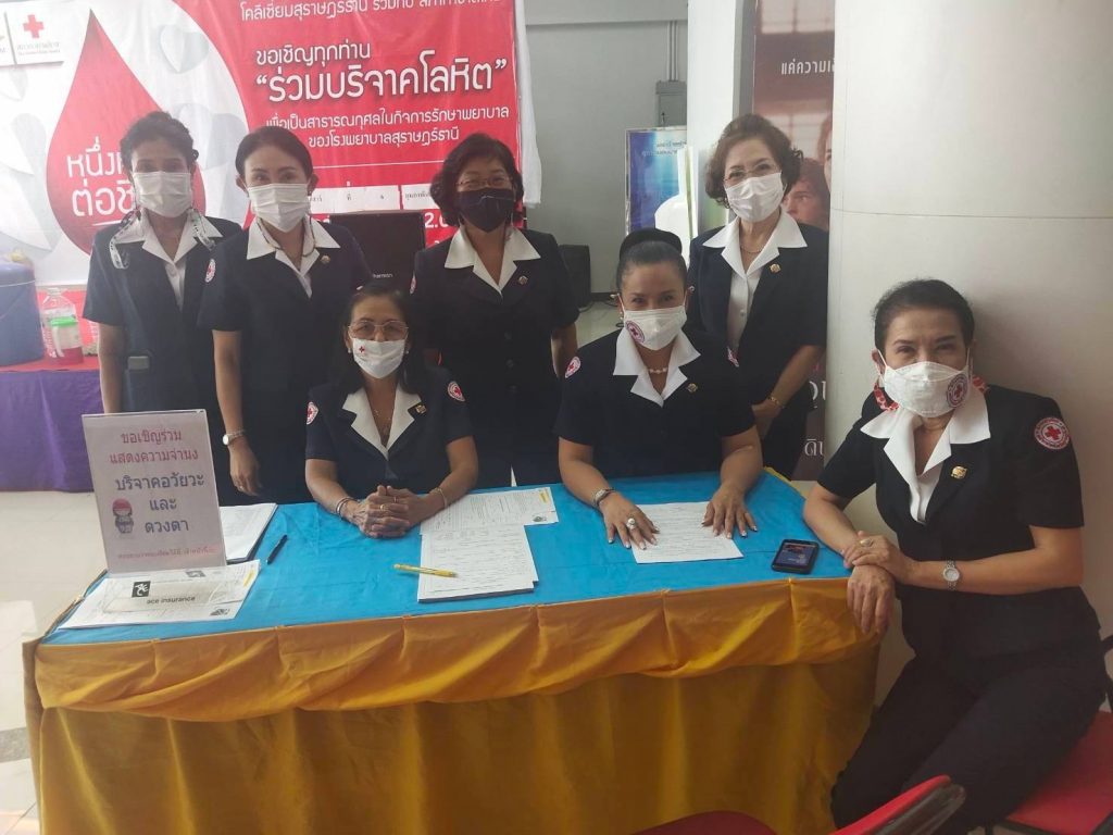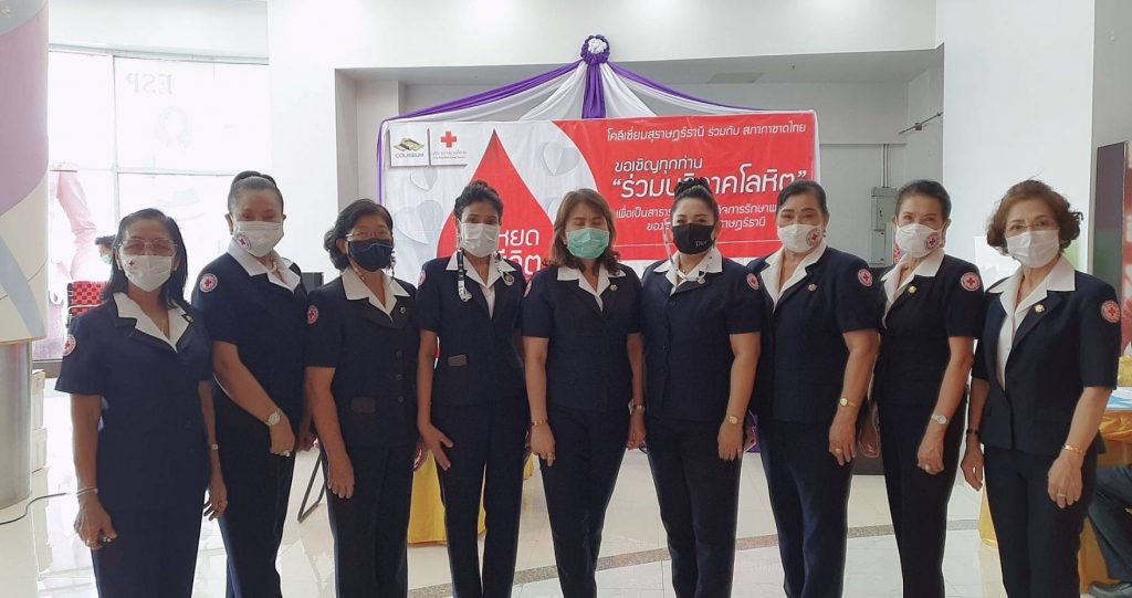 วันที่ 6 กุมภาพันธ์ 2564 นางอุรสา จินโต นายกเหล่ากาชาดจังหวัดสุราษฎร์ธานี มอบหมายให้ที่ปรึกษา/กรรมการ/สมาชิกเหล่ากาชาดจังหวัดสุราษฎร์ธานีและธนาคารเลือดโรงพยาบาลสุราษฎร์ธานีหอการค้าจังหวัดสุราษฎร์ธานีและ YEC สุราษฎร์ธานี ร่วมกับบริษัท โคลีเซี่ยม อินเตอร์กรุ๊ป จํากัด สาขาสุราษฎร์ธานี จัดกิจกรรมรับบริจาคโลหิต ดวงตา และอวัยวะ”บริจาคโลหิต ฝ่าวิกฤต COVID-19 ไม่ให้โลหิตขาดแคลน”เพื่อเป็นการจัดหาโลหิตสำหรับใช้ในการรักษาผู้ป่วยของโรงพยาบาลในจังหวัดสุราษฎร์ธานี ทั้ง 19 อำเภอ ณ บริเวณชั้น 3 ห้างโคลีเซี่ยม สุราษฎร์ธานีอำเภอเมือง จังหวัดสุราษฎร์ธานี มีผู้มาลงทะเบียนบริจาคโลหิต จำนวน 40 รายได้รับโลหิต จำนวน 29 ยูนิต (คิดเป็น 10,150 ซีซี)ไม่ผ่านการคัดกรอง จำนวน 11 รายมีผู้แสดงความจำนงบริจาคดวงตา จำนวน 4 รายและ มีผู้แสดงความจำนงบริจาคอวัยวะ จำนวน 4 ราย