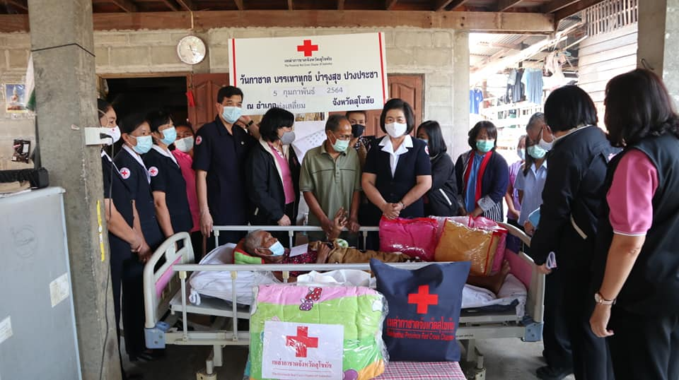 วันที่ 5 กุมภาพันธ์ 2564 นางกนกพร พรรณเทวี นายกเหล่ากาชาดจังหวัดสุโขทัย พร้อมด้วยกรรมการ สมาชิกเหล่ากาชาดจังหวัดสุโขทัย และกิ่งกาชาดอำเภอทุ่งเสลี่ยม พัฒนาสังคมและความมั่นคงของมนุษย์จังหวัดสุโขทัย และหน่วยงานอื่นๆ ลงพื้นที่เยี่ยมผู้สูงอายุผู้ยากไร้ ผู้ป่วยติดเตียง จำนวน 4 ราย