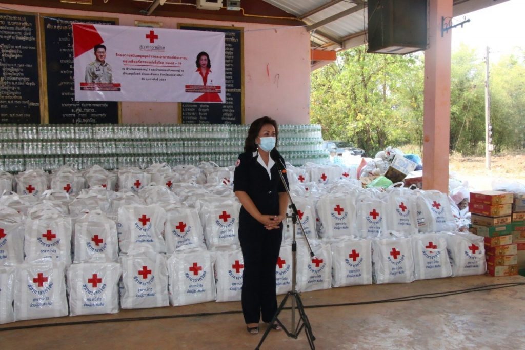 วันที่ 25 กุมภาพันธ์ 2564 นางณัฏฐินีภรณ์ จันทรโณทัย นายกเหล่ากาชาดจังหวัดนครราชสีมา พร้อมด้วย คณะกรรมการ สมาชิกเหล่ากาชาดจังหวัดนครราชสีมาและกิ่งกาชาดอำเภอเสิงสาง ลงพื้นที่มอบถุงยังชีพช่วยเหลือผู้กักตัวโควิด-19 โดยขอผ่านแอปพลิเคชั่นพ้นภัย สภากาชาดไทยในเขตพื้นที่ บ้านหนองแดงม.7 และ บ้านหนองบัวแดง ม.14 ต.กุดโบสถ์ อ.เสิงสาง จ.นครราชสีมา จำนวน 450 ครัวเรือน