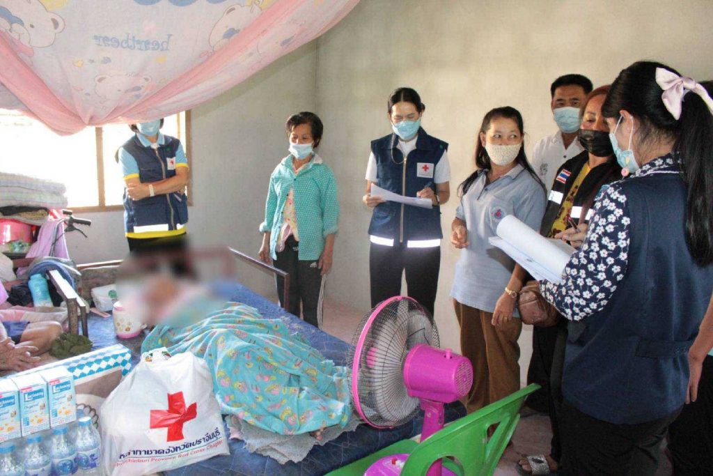 วันที่ 5 กุมภาพันธ์ 2564 นางมัทนา สุวัณณุสส์ นายกเหล่ากาชาดจังหวัดปราจีนบุรี พร้อมด้วย พ.ต.ท.หญิง สุมน เนื่องจำนงค์ รองนายกเหล่ากาชาดจังหวัดปราจีนบุรี คณะกรรมการและสมาชิกเหล่ากาชาดจังหวัดปราจีนบุรี นายวิธรัช รามัญ นายอำเภอประจันตคาม กรมทหารราบที่ 2 รักษาพระองค์ พัฒนาสังคมและความมั่นคงของมนุษย์จังหวัดปราจีนบุรี จิตอาสาพระราชทาน ปลัดอำเภอประจันตคาม สาธารณสุขอำเภอ ผู้นำท้องที่ท้องถิ่น และ อสม. ร่วมลงพื้นที่เยี่ยมผู้ป่วยติดเตียง ที่ยากไร้ และขาดแคลน และด้อยโอกาส ราย นางทองล้ำ ดุลย์สอน อายุ 77 ปี บ้านเลขที่ 23/1 หมู่ 4 ต.หนองแสง อ.ประจันตคาม จ.ปราจีนบุรี ตามโครงการ “วันกาชาด บรรเทาทุกข์ บำรุงสุข ปวงประชา” โดยเหล่ากาชาดจังหวัดปราจีนบุรี ได้มอบชุดอุปโภค – บริโภค จำนวน 1 ชุด มุ้ง จำนวน 1 หลัง ผ้าขนหนู จำนวน 1 ผืน แพมเพิส จำนวน 1 แพค สเปรย์แอลกอฮอล์ จำนวน 1 ขวด ให้กับผู้ป่วยติดเตียงที่ยากไร้ ขาดแคลน และด้อยโอกาส เพื่อบรรเทาความเดือดร้อนเบื้องต้น พร้อมทั้งกล่าวให้กำลังใจ
