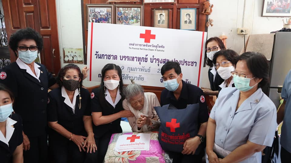 วันที่ 9 กุมภาพันธ์ 2564 นางกนกพร พรรณเทวี นายกเหล่ากาชาดจังหวัดสุโขทัย พร้อมด้วยนางสุวภี อุไรวรณ์ รองนายกเหล่ากาชาดจังหวัดสุโขทัย นายอำเภอศรีสัชนาลัย นายกกิ่งกาชาดอำเภอศรีสัชนาลัย กรรมการ สมาชิกเหล่ากาชาดจังหวัดสุโขทัยและกิ่งกาชาดอำเภอศรีสัชนาลัย และหน่วยงานอื่นๆ ลงพื้นที่เยี่ยมผู้สูงอายุ 100 ปีขึ้นไป จำนวน 9 ราย