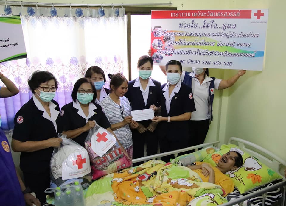 วันที่ 28 มกราคม 2564 นางสุกัญญา ชุมอุปการ นายกเหล่ากาชาดจังหวัดนครสวรรค์ ได้มอบหมายให้ นางนพปพัชร์ วรายนต์พินิจ ผู้ช่วยนายกเหล่ากาชาดจังหวัดนครสวรรค์ พร้อมด้วย คณะกรรมการ และสมาชิกเหล่ากาชาดจังหวัดนครสวรรค์ ร่วมกับ อำเภอไพศาลี พัฒนาสังคมและความมั่นคงของมนุษย์ จังหวัดนครสวรรค์ สาธารณสุขอำเภอไพศาลี ลงพื้นที่เยี่ยมผู้ป่วยติดเตียงในโครงการ “ส่งเสริมสุขภาพชีวิตผู้ป่วยติดเตียง ผู้ยากไร้และด้อยโอกาส ประจำปี 2564” รายนายสาธิต ไฝทอง อายุ 23 ปี บ้านเลขที่ 627 หมู่ที่ 4 ตำบลไพศาลี อำเภอไพศาลี จังหวัดนครสวรรค์ โดยเหล่ากาชาดฯ มอบเงินสงเคราะห์ จำนวน 1,000 บาท พร้อมเครื่องอุปโภค บริโภค และน้ำดื่ม เพื่อเป็นการบรรเทาความเดือดร้อนในเบื้องต้น และให้กำลังใจในการเนินชีวิตต่อไป
