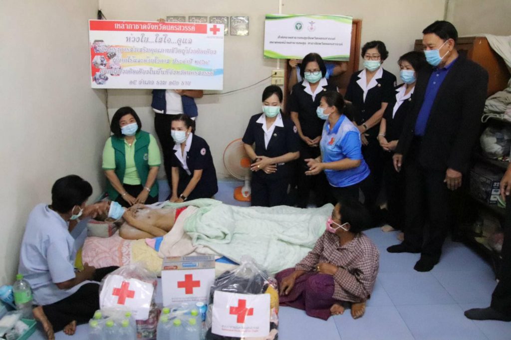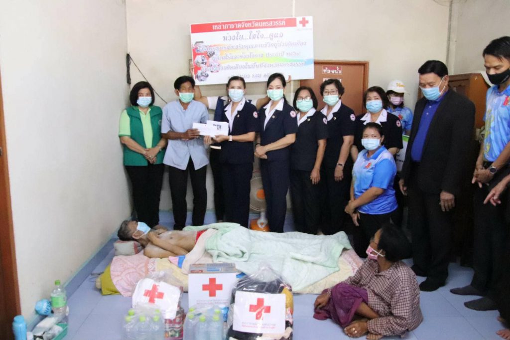 วันที่ 28 มกราคม 2564 นางสุกัญญา ชุมอุปการ นายกเหล่ากาชาดจังหวัดนครสวรรค์ ได้มอบหมายให้นางนพปพัชร์ วรายนต์พินิจ ผู้ช่วยนายกเหล่ากาชาดจังหวัดนครสวรรค์ พร้อมด้วย คณะกรรมการ และสมาชิกเหล่ากาชาดจังหวัดนครสวรรค์ ร่วมกับ อำเภอไพศาลี พัฒนาสังคมและความมั่นคงของมนุษย์ จังหวัดนครสวรรค์ สาธารณสุขอำเภอไพศาลี อสม.ในพื้นที่ ลงพื้นที่เยี่ยมผู้ป่วยติดเตียงในโครงการ “ส่งเสริมสุขภาพชีวิตผู้ป่วยติดเตียง ผู้ยากไร้และด้อยโอกาส ประจำปี 2564” รายนายสมหมาย แตงไทย อายุ 55 ปี บ้านเลขที่ 259 หมู่ที่ 2 ตำบลวังน้ำลัด อำเภอไพศาลี จังหวัดนครสวรรค์ โดยเหล่ากาชาดฯ มอบเงินสงเคราะห์ จำนวน 1,000 บาท พร้อมเครื่องอุปโภค บริโภค และน้ำดื่ม เพื่อเป็นการบรรเทาความเดือดร้อนในเบื้องต้น และให้กำลังใจในการเนินชีวิตต่อไป