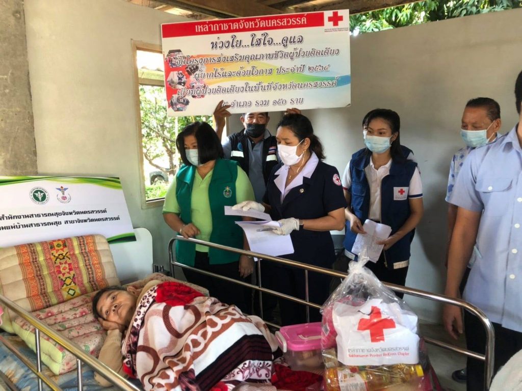 วันที่ 1 กุมภาพันธ์ 2564 นางสุกัญญา ชุมอุปการ นายกเหล่ากาชาดจังหวัดนครสวรรค์ ได้มอบหมายให้ นางวิยดา พลับน้อย รองนายกเหล่ากาชาดจังหวัดนครสวรรค์ พร้อมคณะ ร่วมกับอำเภอชุมตาบง สาธารณสุขจังหวัดนครสวรรค์และอำเภอชุมตาบง อสม.ในพื้นที่ ลงพื้นที่เยี่ยมผู้ป่วยติดเตียงในโครงการ “ส่งเสริมสุขภาพชีวิตผู้ป่วยติดเตียง ผู้ยากไร้และด้อยโอกาส ประจำปี 2564” ราย นางค้อ ขุนพลนาควาส อายุ 71 ปี บ้านเลขที่ 299 หมู่ที่ 1 ตำบลชุมตาบง อำเภอชุมตาบง จังหวัดนครสวรรค์ โดยเหล่ากาชาดฯ มอบเงินสงเคราะห์ จำนวน 1,000 บาท พร้อมเครื่องอุปโภค บริโภค และน้ำดื่ม เพื่อเป็นการบรรเทาความเดือดร้อนในเบื้องต้น และให้กำลังใจในการเนินชีวิตต่อไป