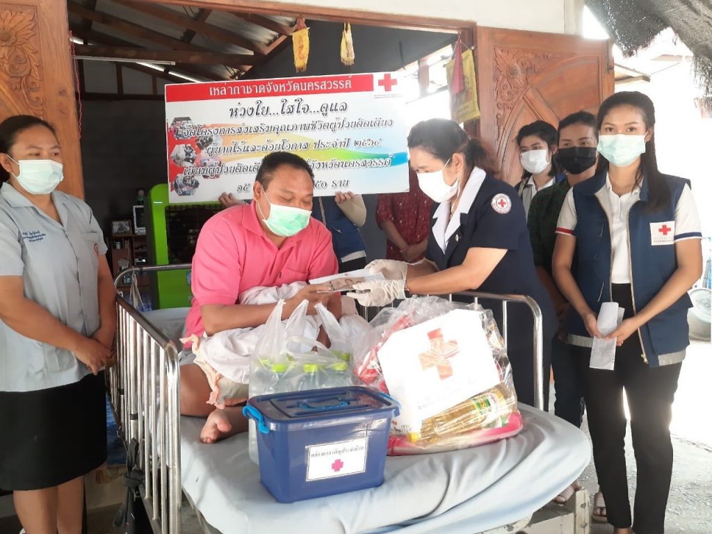 วันที่ 1 กุมภาพันธ์ 2564 นางสุกัญญา ชุมอุปการ นายกเหล่ากาชาดจังหวัดนครสวรรค์ ได้มอบหมายให้นางวิยดา พลับน้อย รองนายกเหล่ากาชาดจังหวัดนครสวรรค์ พร้อมคณะ ร่วมกับ อำเภอชุมตาบง สาธารณสุขจังหวัดนครสวรรค์และอำเภอชุมตาบง อสม.ในพื้นที่ ลงพื้นที่เยี่ยมผู้ป่วยติดเตียงในโครงการ “ส่งเสริมสุขภาพชีวิตผู้ป่วยติดเตียง ผู้ยากไร้และด้อยโอกาส ประจำปี 2564” รายนายมนัส แสนกงพลี อายุ 46 ปี บ้านเลขที่ 330 หมู่ที่ 8 ตำบลชุมตาบง อำเภอชุมตาบง จังหวัดนครสวรรค์ โดยเหล่ากาชาดฯ มอบเงินสงเคราะห์ จำนวน 1,000 บาท พร้อมเครื่องอุปโภค บริโภค และน้ำดื่ม เพื่อเป็นการบรรเทาความเดือดร้อนในเบื้องต้น และให้กำลังใจในการเนินชีวิตต่อไป