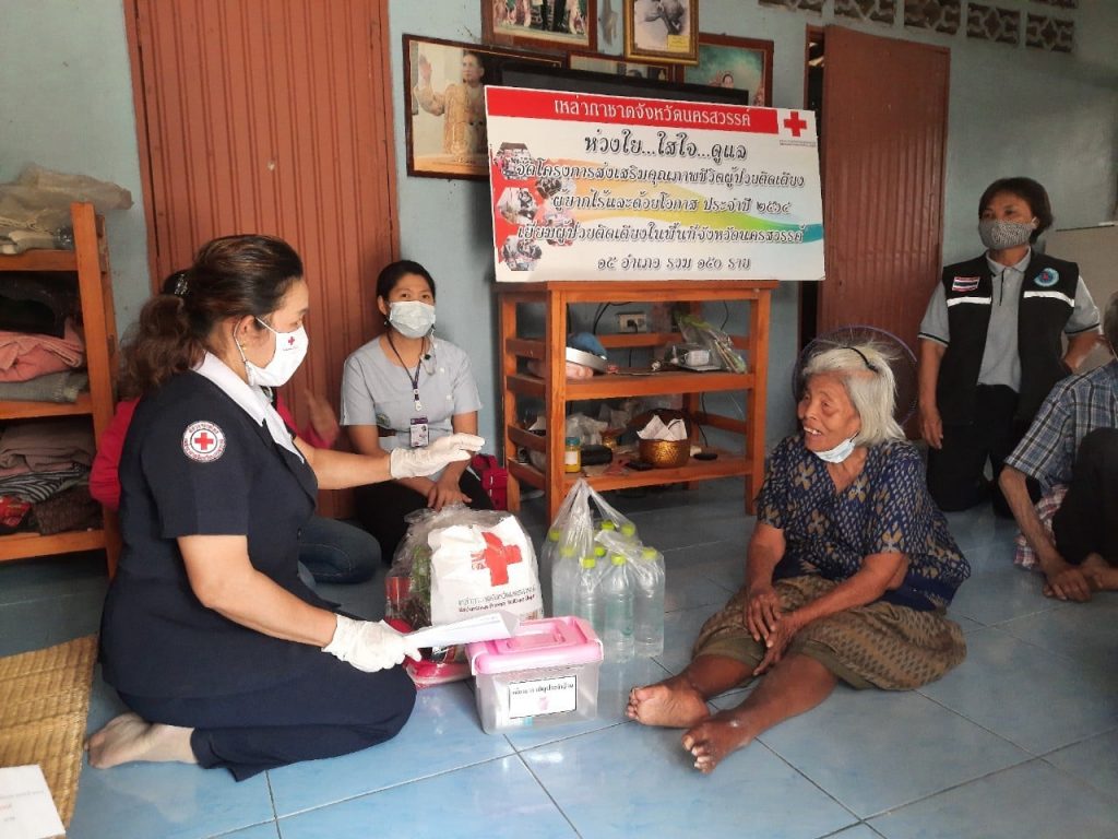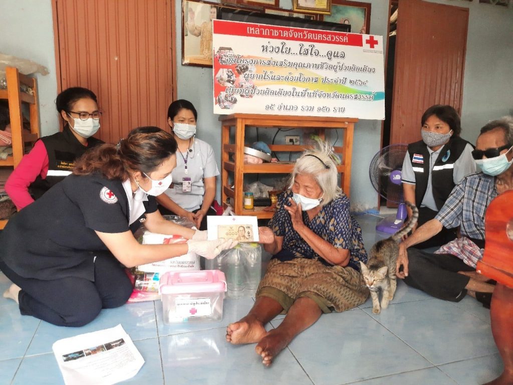วันที่ 1 กุมภาพันธ์ 2564 นางสุกัญญา ชุมอุปการ นายกเหล่ากาชาดจังหวัดนครสวรรค์ ได้มอบหมายให้นางวิยดา พลับน้อย รองนายกเหล่ากาชาดจังหวัดนครสวรรค์พร้อมคณะ ร่วมกับอำเภอชุมตาบง สาธารณสุขจังหวัดนครสวรรค์และอำเภอชุมตาบง อสม.ในพื้นที่ ลงพื้นที่เยี่ยมผู้ป่วยติดเตียงในโครงการ “ส่งเสริมสุขภาพชีวิตผู้ป่วยติดเตียง ผู้ยากไร้และด้อยโอกาส ประจำปี 2564” รายนางปุ่น แคนนาวาท อายุ 72 ปี บ้านเลขเลขที่ 29 หมู่ที่ 9 ตำบลชุมตาบง อำเภอชุมตาบง จังหวัดนครสวรรค์ โดยเหล่ากาชาดฯ มอบเงินสงเคราะห์ จำนวน 1,000 บาท พร้อมเครื่องอุปโภค บริโภค และน้ำดื่ม เพื่อเป็นการบรรเทาความเดือดร้อนในเบื้องต้น และให้กำลังใจในการเนินชีวิตต่อไป