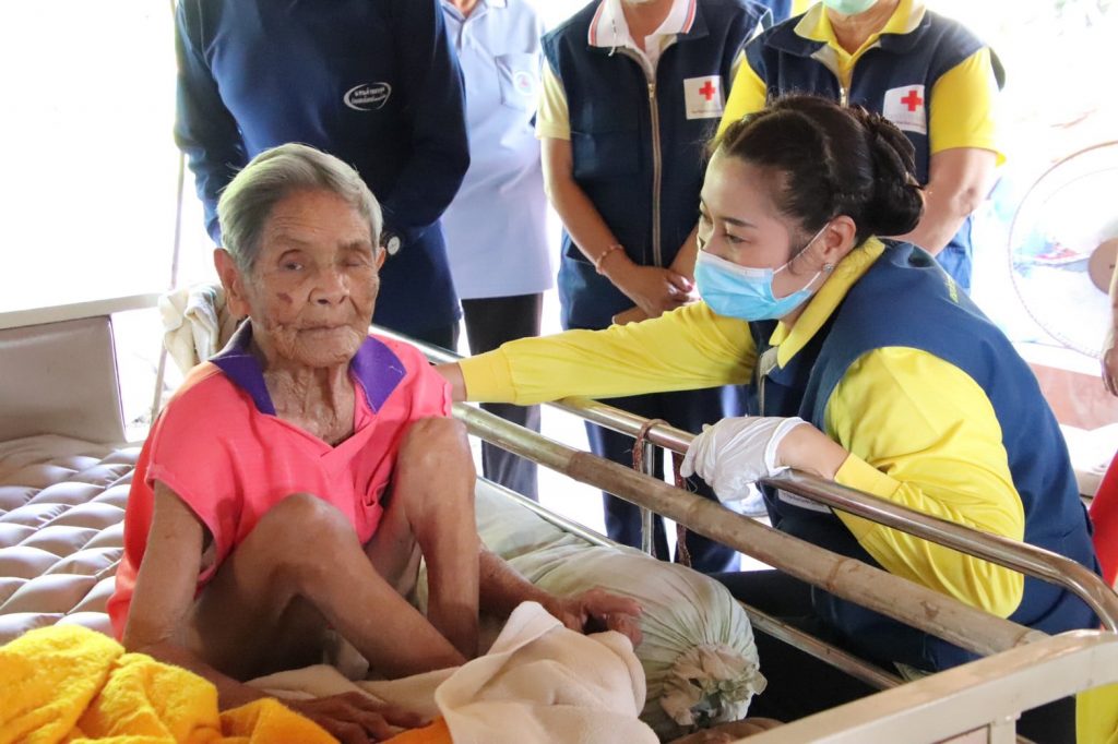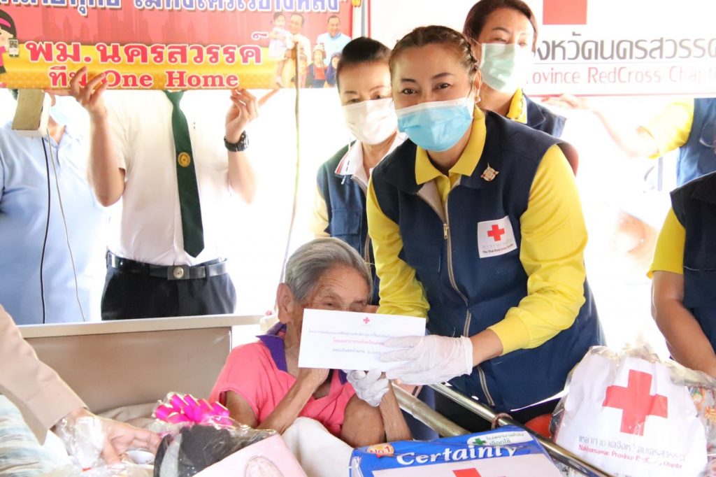 วันที่ 1 กุมภาพันธ์ 2564 นางสุกัญญา ชุมอุปการ นายกเหล่ากาชาดจังหวัดนครสวรรค์ พร้อมด้วยคณะกรรมการ และสมาชิกเหล่ากาชาดจังหวัดนครสวรรค์ ร่วมกับ อำเภอพยุหะคีรี หน่วยงานในสังกัดกระทรวงการพัฒนาสังคมและความมั่นคงของมนุษย์ จังหวัดนครสวรรค์ สาธารณสุขอำเภอพยุหะคีรี แม่บ้านมหาดไทยจังหวัดนครสวรรค์ ลงพื้นที่เยี่ยมผู้ป่วยติดเตียงในโครงการ “ส่งเสริมสุขภาพชีวิตผู้ป่วยติดเตียง ผู้ยากไร้และด้อยโอกาส ประจำปี 2564” รายนางสาย อินมะณี อายุ 91 ปี บ้านเลขที่ 6 หมู่ที่ 1 ตำบลม่วงหัก อำเภอพยุหะคีรี จังหวัดนครสวรรค์ โดยเหล่ากาชาดฯ มอบเงินสงเคราะห์ จำนวน 1,000 บาท พร้อมเครื่องอุปโภค บริโภค ผ้าอ้อมผู้ใหญ่สำเร็จรูป และน้ำดื่ม เพื่อเป็นการบรรเทาความเดือดร้อนในเบื้องต้น และให้กำลังใจในการเนินชีวิตต่อไป