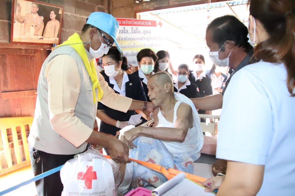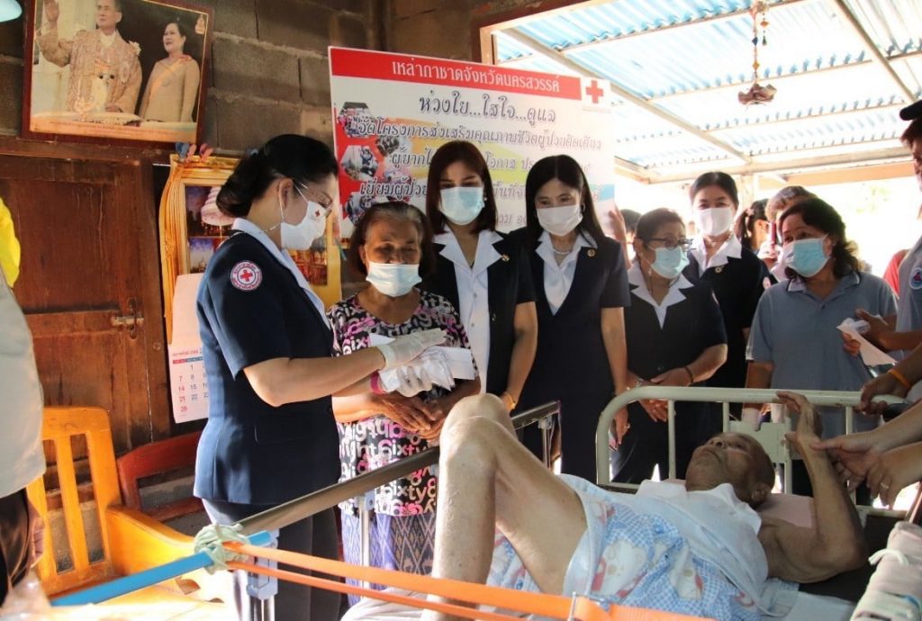 วันที่ 3 กุมภาพันธ์ 2564 นางสุกัญญา ชุมอุปการ นายกเหล่ากาชาดจังหวัดนครสวรรค์ ได้มอบหมายให้ นางรัตนา เดชพันธุ์ รองนายกเหล่ากาชาดจังหวัดนครสวรรค์ พร้อมคณะกรรมการ และสมาชิกเหล่ากาชาดจังหวัดนครสวรรค์ ร่วมกับ สาธารณสุขจังหวัดนครสวรรค์ อำเภอแม่วงก์ ผู้นำชุมชนในพื้นที่ ลงพื้นที่เยี่ยมผู้ป่วยติดเตียงในโครงการ “ส่งเสริมสุขภาพชีวิตผู้ป่วยติดเตียง ผู้ยากไร้และด้อยโอกาส ประจำปี 2564” รายนายสังเวียน อ่อนภูเขา อายุ 76 ปี บ้านเลขที่ 197 หมู่ที่ 1 ตำบลวังซ่าน อำเภอแม่วงก์ จังหวัดนครสวรรค์ โดยเหล่ากาชาดฯ มอบเงินสงเคราะห์ จำนวน 1,000 บาท พร้อมเครื่องอุปโภค บริโภค และน้ำดื่ม เพื่อเป็นการบรรเทาความเดือดร้อนในเบื้องต้น และให้กำลังใจในการเนินชีวิตต่อไป