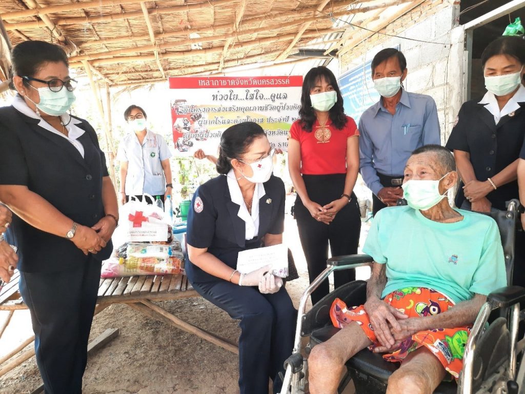 วันที่ 3 กุมภาพันธ์ 2564 นางสุกัญญา ชุมอุปการ นายกเหล่ากาชาดจังหวัดนครสวรรค์ ได้มอบหมายให้นางรัตนา เดชพันธุ์ รองนายกเหล่ากาชาดจังหวัดนครสวรรค์ พร้อมคณะกรรมการ และสมาชิกเหล่ากาชาดจังหวัดนครสวรรค์ ร่วมกับ สาธารณสุขจังหวัดนครสวรรค์ อำเภอแม่วงก์ ผู้นำชุมชนในพื้นที่ ลงพื้นที่เยี่ยมผู้ป่วยติดเตียงในโครงการ “ส่งเสริมสุขภาพชีวิตผู้ป่วยติดเตียง ผู้ยากไร้และด้อยโอกาส ประจำปี 2564” รายนายสังเวียน กล้าถิ่นภู อายุ 83 ปี บ้านเลขที่ 52 ตำบลแม่วงก์ อำเภอแม่วงก์ จังหวัดนครสวรรค์ โดยเหล่ากาชาดฯ มอบเงินสงเคราะห์ จำนวน 1,000 บาท พร้อมเครื่องอุปโภค บริโภค และน้ำดื่ม เพื่อเป็นการบรรเทาความเดือดร้อนในเบื้องต้น และให้กำลังใจในการเนินชีวิตต่อไป