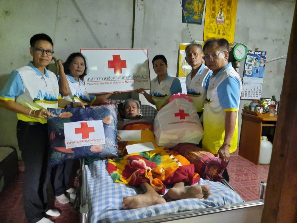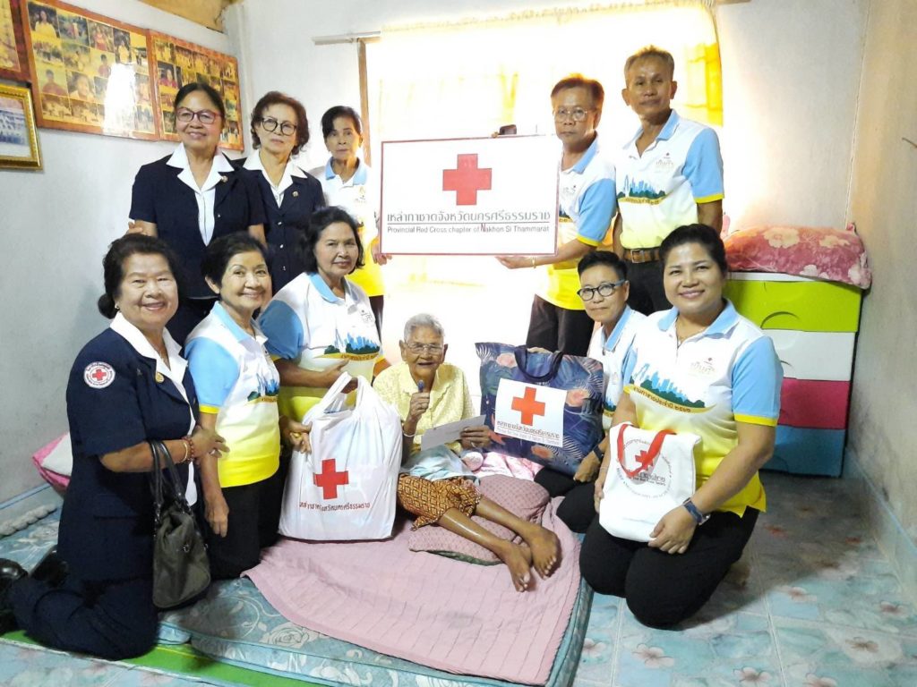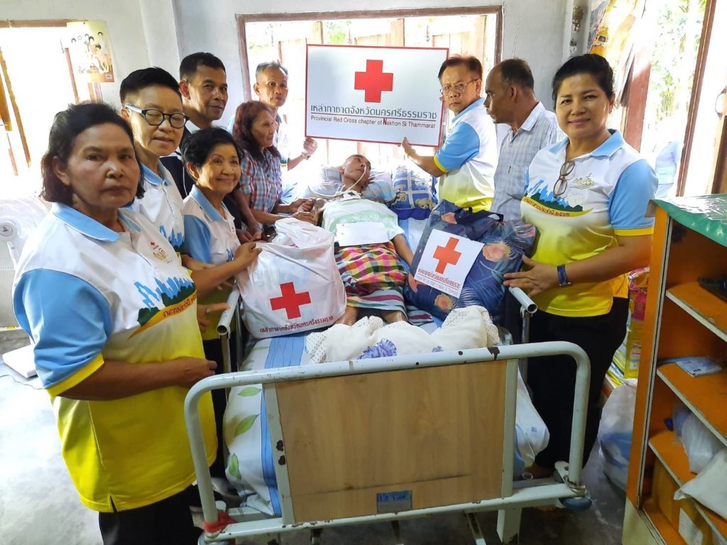 วันที่ 3 มกราคม 2563 นางรัติยา พัฒกุล นายกเหล่ากาชาดจังหวัดนครศรีธรรมราชมอบหมายให้คณะกรรมการเหล่ากาชาดจังหวัดนครศรีธรรมราชเยี่ยมและให้กำลังผู้ป่วยติดเตียง