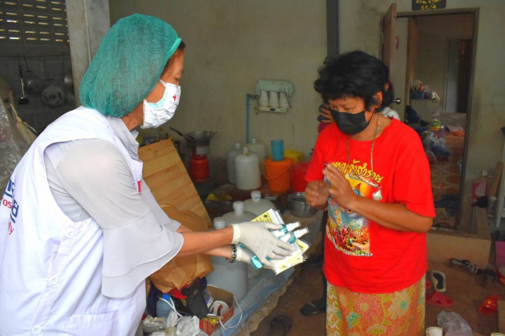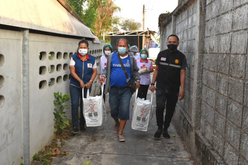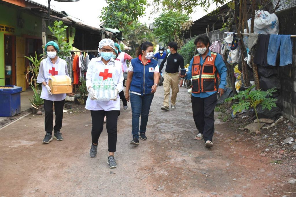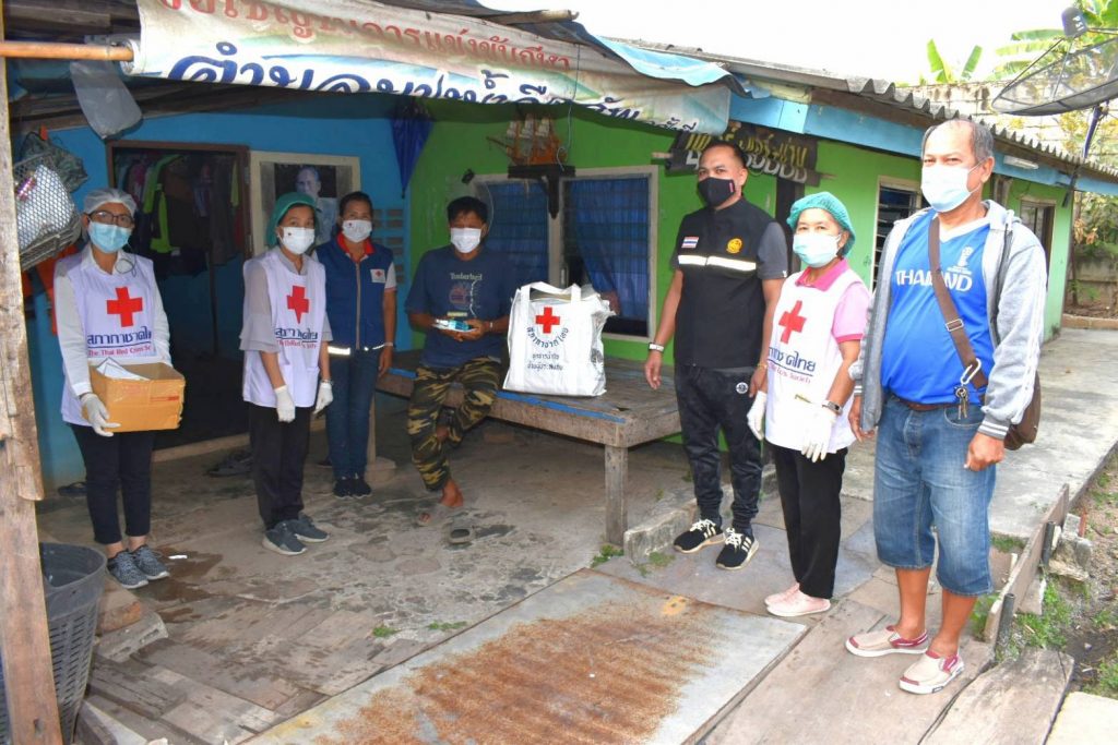 วันที่ 19 มกราคม 2564 นางชุติพร วิจิตร์แสงศรี นายกเหล่ากาชาดจังหวัดสมุทรสาคร มอบหมายให้กรรมการและสมาชิกเหล่ากาชาดฯ ร่วมกับสำนักงานพัฒนาชุมชนจังหวัดสมุทรสาคร และผู้นำชุมชน ลงพื้นที่มอบชุดธารน้ำใจ ซึ่งได้รับการสนับสนุนจากสำนักงานบรรเทาทุข์และประชานามัยพิทักษ์ สภากาชาดไทย ให้แก่ผู้ได้รับผลกระทบจากสถานการณ์แพร่ระบาดของ COVID-19 ในพื้นที่อำเภอเมืองสมุทรสาคร จำนวน 128 ชุด ณ ตำบลบางโทรัด และตำบลคอกกระบือ อำเภอเมืองฯ จังหวัดสมุทรสาคร