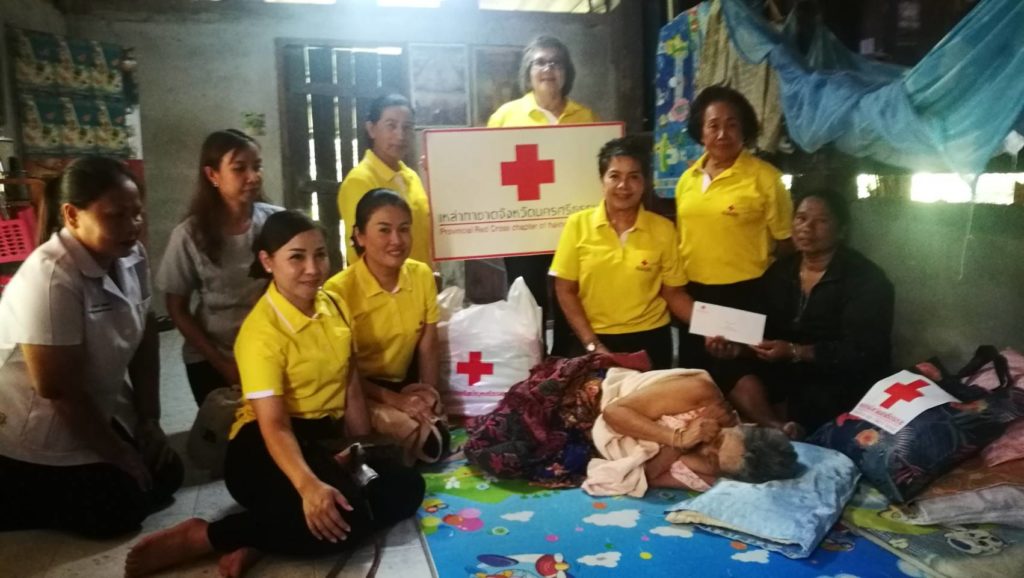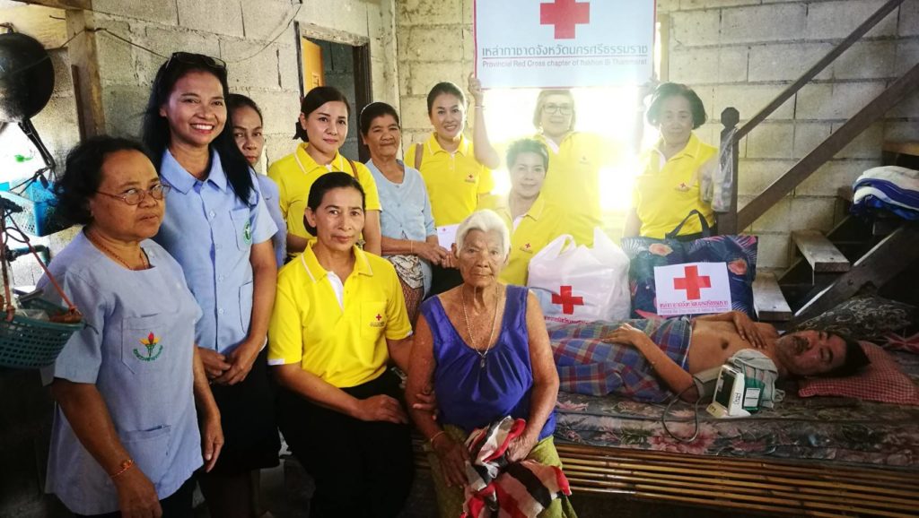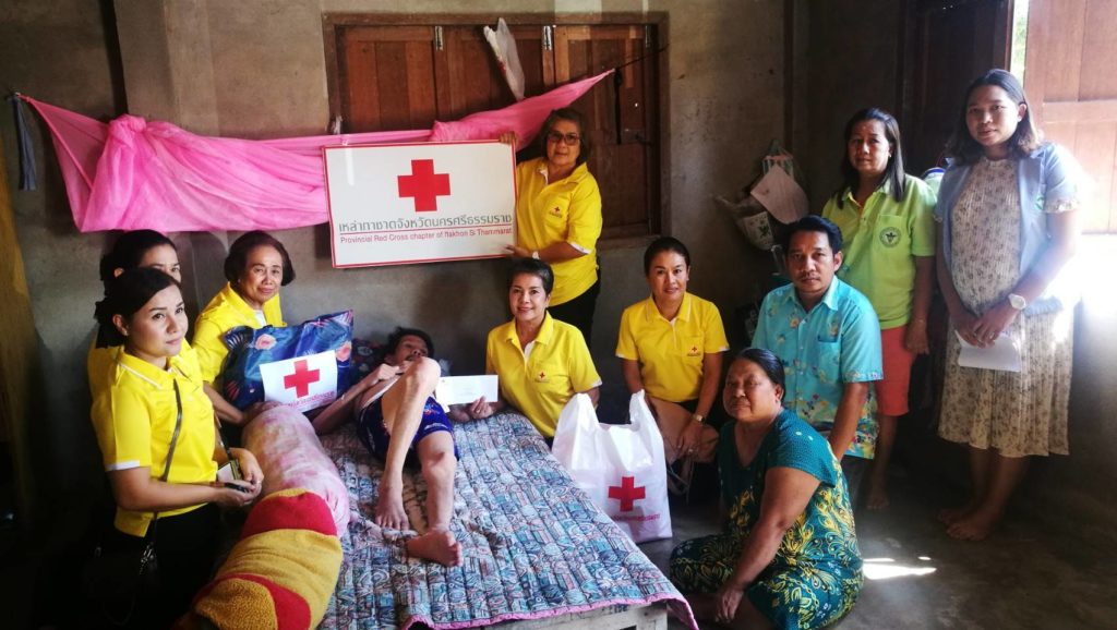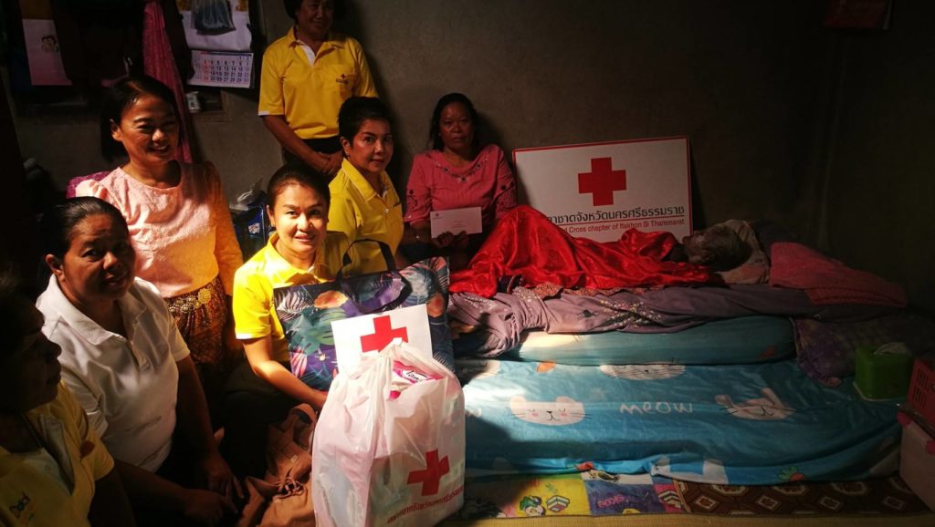 วันที่ 6 มกราคม 2563 นางรัติยา พัฒกุล นายกเหล่ากาชาดจังหวัดนครศรีธรรมราชมอบหมายให้คณะกรรมการเหล่ากาชาดจังหวัดนครศรีธรรมราชเยี่ยมและให้กำลังผู้ป่วยติดเตียง