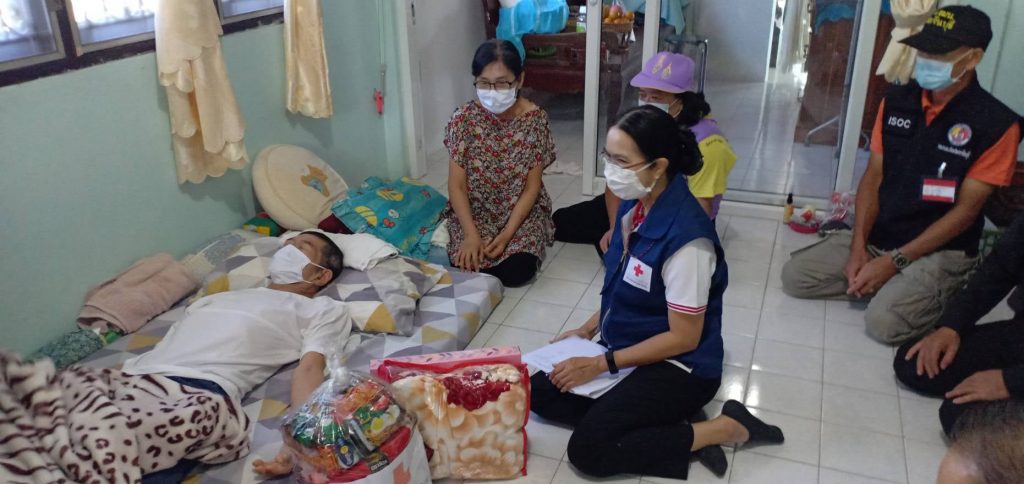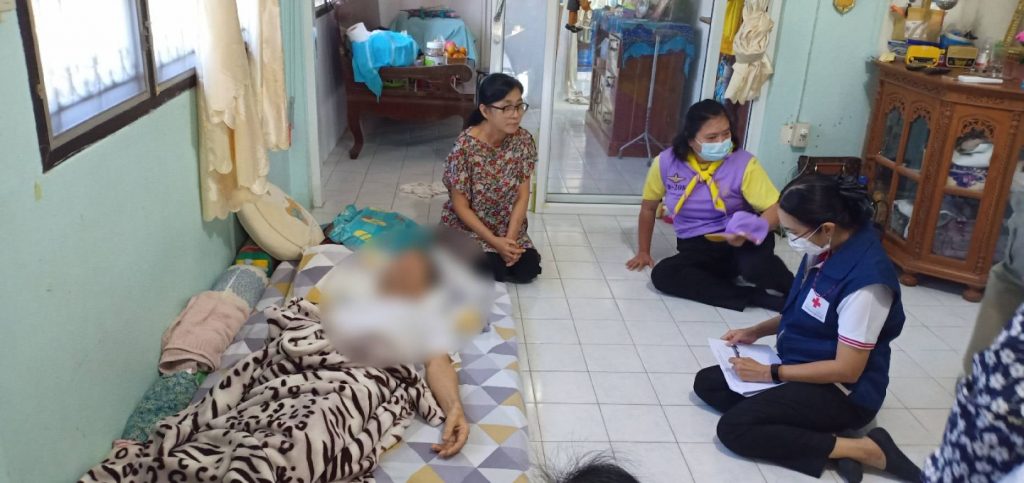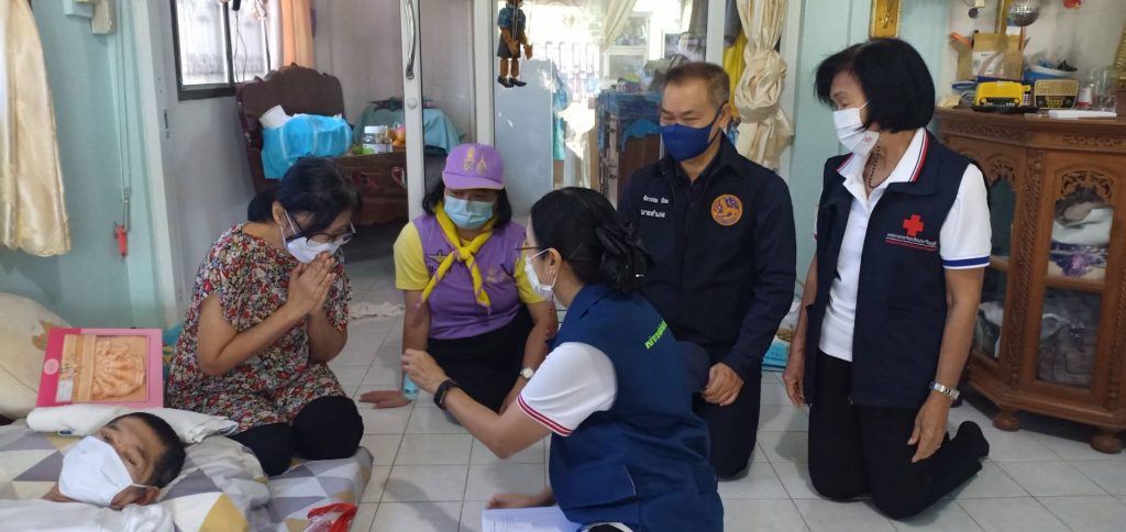 วันที่ 11 กุมภาพันธ์ 2564 นางมัทนา สุวัณณุสส์ นายกเหล่ากาชาดจังหวัดปราจีนบุรี พร้อมด้วย คณะกรรมการและสมาชิกเหล่ากาชาดจังหวัดปราจีนบุรี นายชัยวรรณ นิยม นายอำเภอศรีมหาโพธิ พัฒนาสังคมและความมั่นคงของมนุษย์จังหวัดปราจีนบุรี จิตอาสาพระราชทาน ผู้แทน กอ.รมน.ปจ. ปลัดอำเภอศรีมหาโพธิ สาธารณสุขอำเภอ ผู้นำท้องที่ท้องถิ่น และ อสม. ร่วมลงพื้นที่เยี่ยมผู้ป่วยติดเตียงที่ยากไร้ ขาดแคลน และด้อยโอกาส ราย นายวิทยา ไตรปักษ์ อายุ 63 ปี บ้านเลขที่ 229 หมู่ 4 ต.ศรีมหาโพธิ อ.ศรีมหาโพธิ จ.ปราจีนบุรี ตามโครงการ “วันกาชาด บรรเทาทุกข์ บำรุงสุข ปวงประชา”โดยเหล่ากาชาดจังหวัดปราจีนบุรี ได้มอบชุดอุปโภค – บริโภค จำนวน 1 ชุด มุ้ง จำนวน 1 หลัง ผ้าขนหนู จำนวน 1 ผืน สเปรย์แอลกอฮอล์ จำนวน 1 ขวด หน้ากากอนามัย จำนวน 2 ชิ้น ให้กับผู้ป่วยติดเตียงที่ยากไร้ ขาดแคลน และด้อยโอกาส เพื่อบรรเทาความเดือดร้อนเบื้องต้น พร้อมทั้งกล่าวให้กำลังใจ