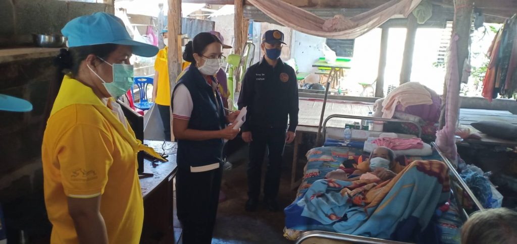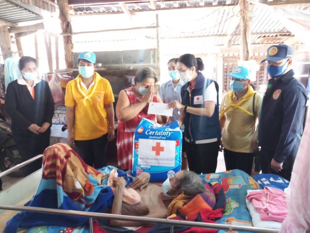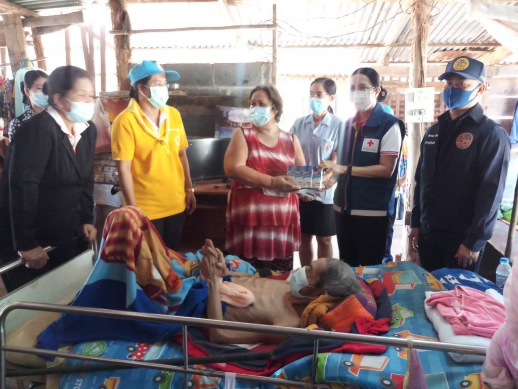 วันที่ 11 กุมภาพันธ์ 2564 นางมัทนา สุวัณณุสส์ นายกเหล่ากาชาดจังหวัดปราจีนบุรี พร้อมด้วยคณะกรรมการและสมาชิกเหล่ากาชาดจังหวัดปราจีนบุรี นายชัยวรรณ นิยม นายอำเภอศรีมหาโพธิ พัฒนาสังคมและความมั่นคงของมนุษย์จังหวัดปราจีนบุรี จิตอาสาพระราชทาน ปลัดอำเภอศรีมหาโพธิ สาธารณสุขอำเภอ ผู้นำท้องที่ท้องถิ่น และ อสม. ร่วมลงพื้นที่เยี่ยมผู้พิการที่ยากไร้ ขาดแคลน และด้อยโอกาส ราย นายทองใบ พะวง อายุ 65 ปี บ้านเลขที่ 49 หมู่ 9 ต.ศรีมหาโพธิ อ.ศรีมหาโพธิ จ.ปราจีนบุรี ตามโครงการ “วันกาชาด บรรเทาทุกข์ บำรุงสุข ปวงประชา”โดยเหล่ากาชาดจังหวัดปราจีนบุรี ได้มอบเงินจำนวน 1,000 บาท มอบชุดอุปโภค – บริโภค จำนวน 1 ชุด มุ้ง จำนวน 1 หลัง ผ้าขนหนู จำนวน 1 ผืน แพมเพิส จำนวน 1 แพ็ค สเปรย์แอลกอฮอล์ จำนวน 1 ขวด หน้ากากอนามัย จำนวน 2 ชิ้น ให้กับผู้พิการที่ยากไร้ ขาดแคลน และด้อยโอกาส เพื่อบรรเทาความเดือดร้อนเบื้องต้น พร้อมทั้งกล่าวให้กำลังใจ