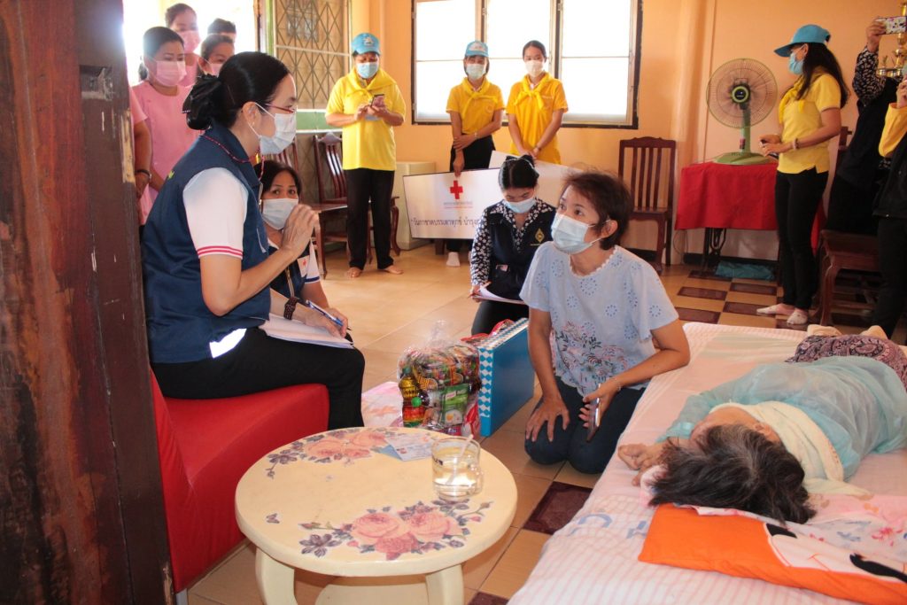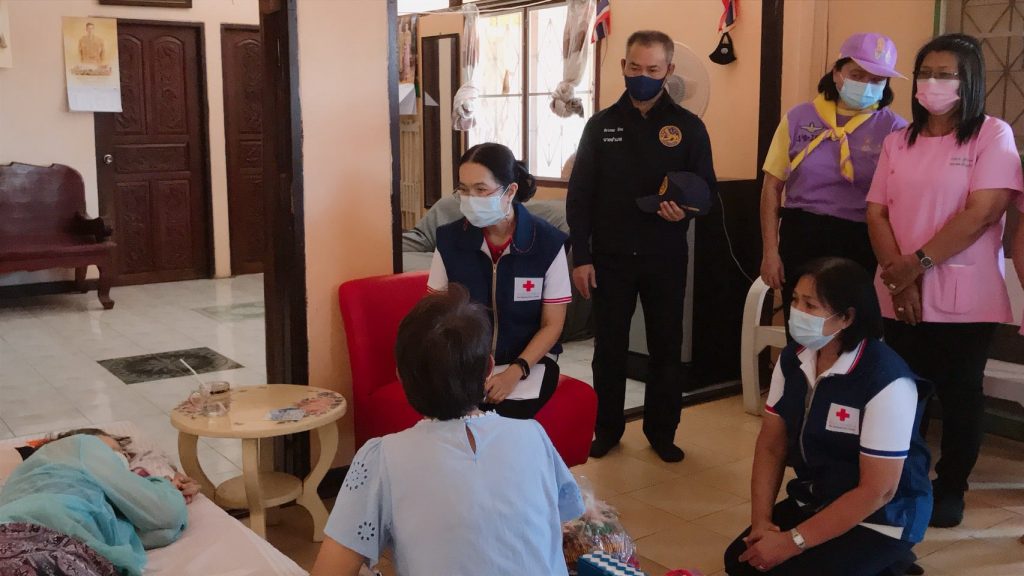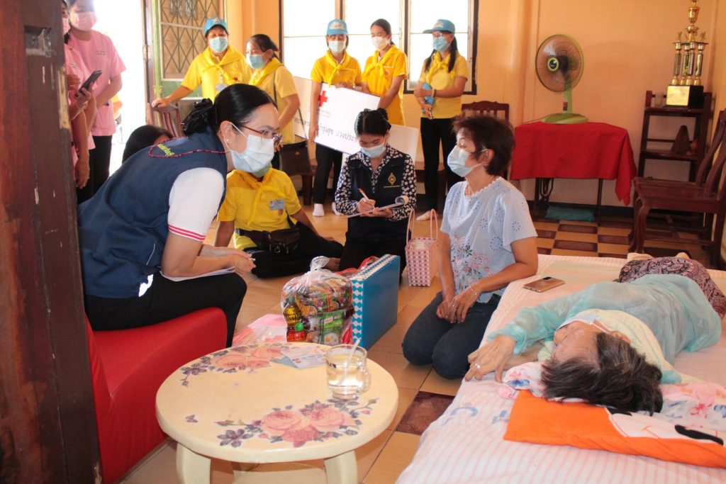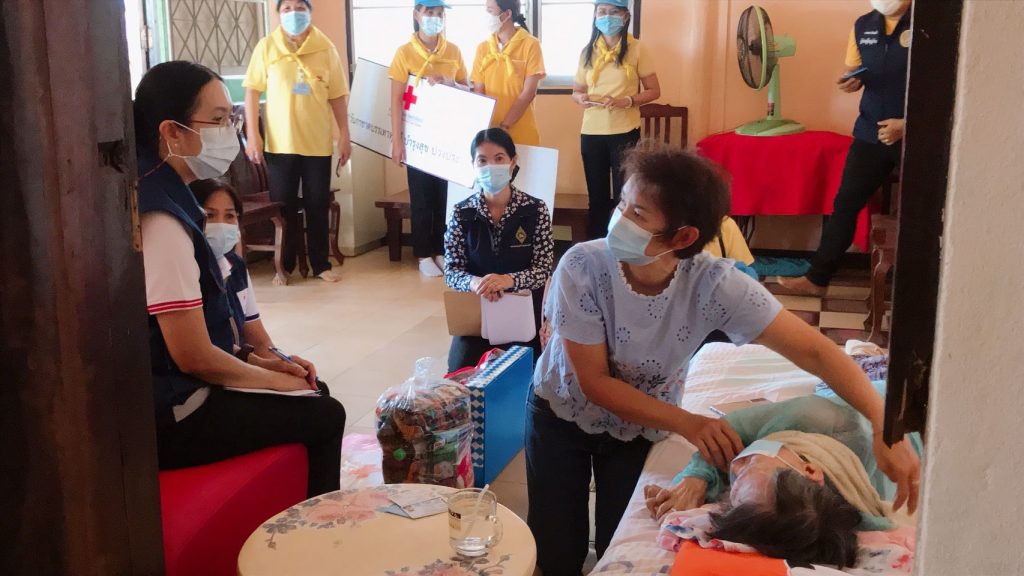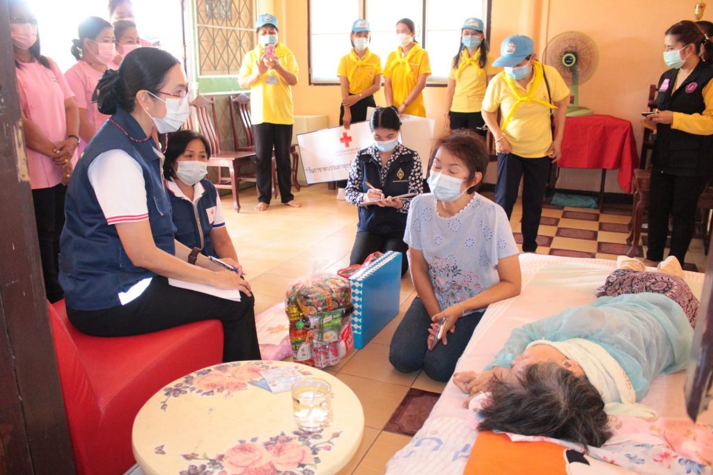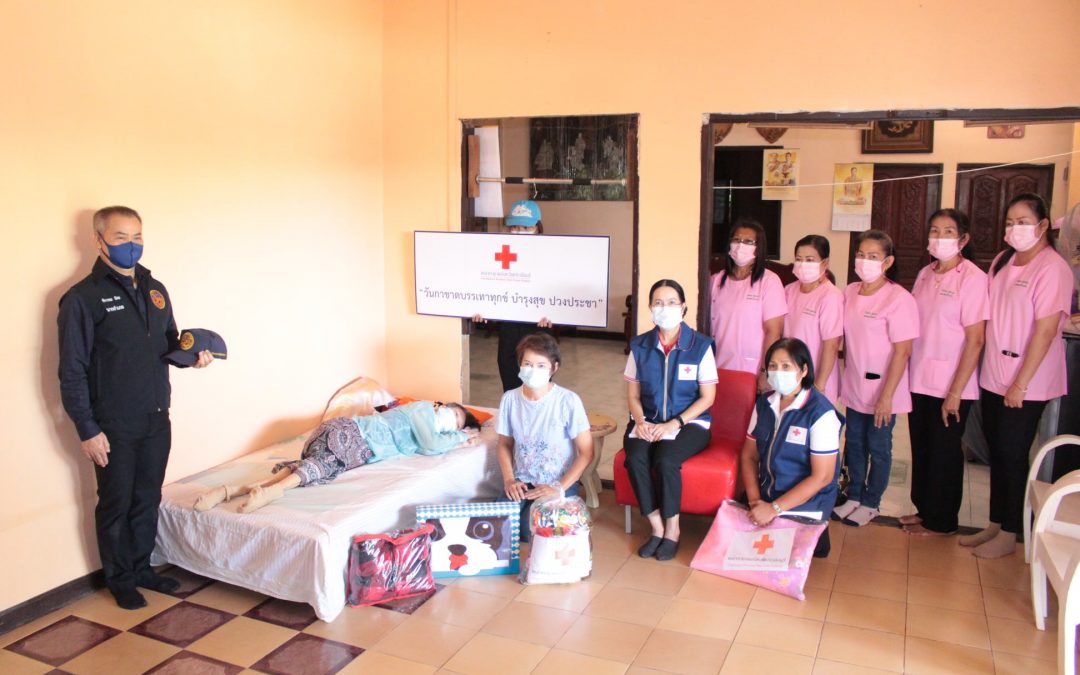 วันที่ 11 กุมภาพันธ์ 2564 นางมัทนา สุวัณณุสส์ นายกเหล่ากาชาดจังหวัดปราจีนบุรี พร้อมด้วย คณะกรรมการและสมาชิกเหล่ากาชาดจังหวัดปราจีนบุรี นายชัยวรรณ นิยม นายอำเภอศรีมหาโพธิ พัฒนาสังคมและความมั่นคงของมนุษย์จังหวัดปราจีนบุรี จิตอาสาพระราชทาน ปลัดอำเภอศรีมหาโพธิ สาธารณสุขอำเภอ ผู้นำท้องที่ท้องถิ่น และ อสม. ร่วมลงพื้นที่เยี่ยมผู้ป่วยติดเตียง ที่ยากไร้ ขาดแคลน และด้อยโอกาส ราย นางสาวกิมบ้วย คำขาว อายุ 66 ปี บ้านเลขที่ 145 หมู่ 3 ต.หัวหว้า อ.ศรีมหาโพธิ จ.ปราจีนบุรี ตามโครงการ “วันกาชาดบรรเทาทุกข์ บำรุงสุข ปวงประชา”โดยเหล่ากาชาดจังหวัดปราจีนบุรี ได้มอบชุดอุปโภค – บริโภค จำนวน 1 ชุด มุ้ง จำนวน 1 หลัง ผ้าขนหนู จำนวน 1 ผืน สเปรย์แอลกอฮอล์ จำนวน 1 ขวด หน้ากากอนามัย จำนวน 2 ชิ้น ให้กับผู้ป่วยติดเตียงที่ยากไร้ ขาดแคลน และด้อยโอกาส เพื่อบรรเทาความเดือดร้อนเบื้องต้น พร้อมทั้งกล่าวให้กำลังใจ