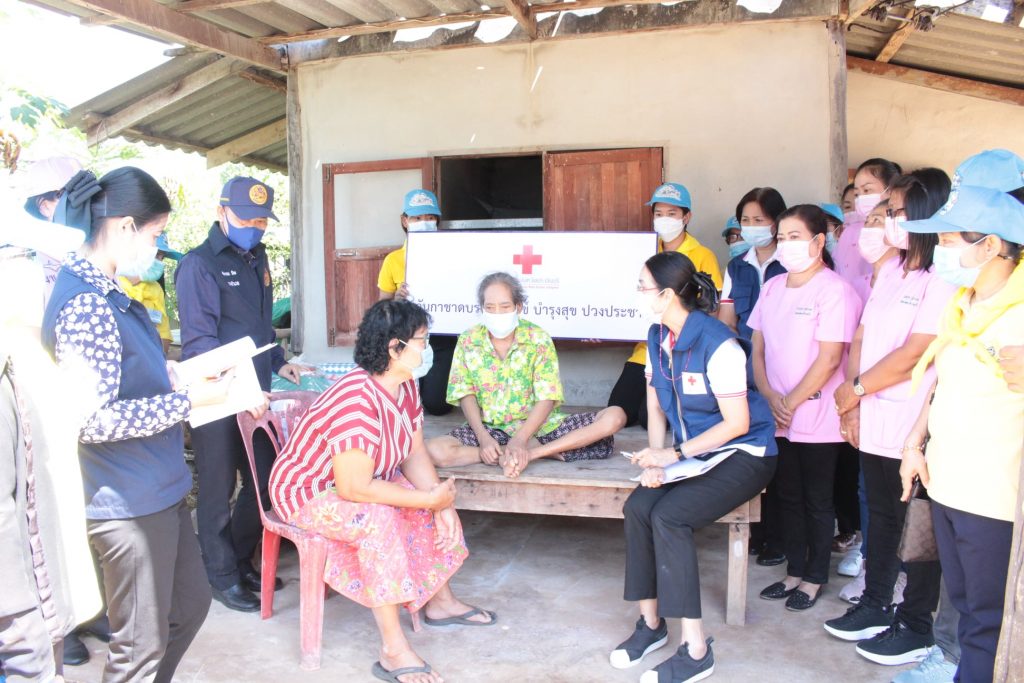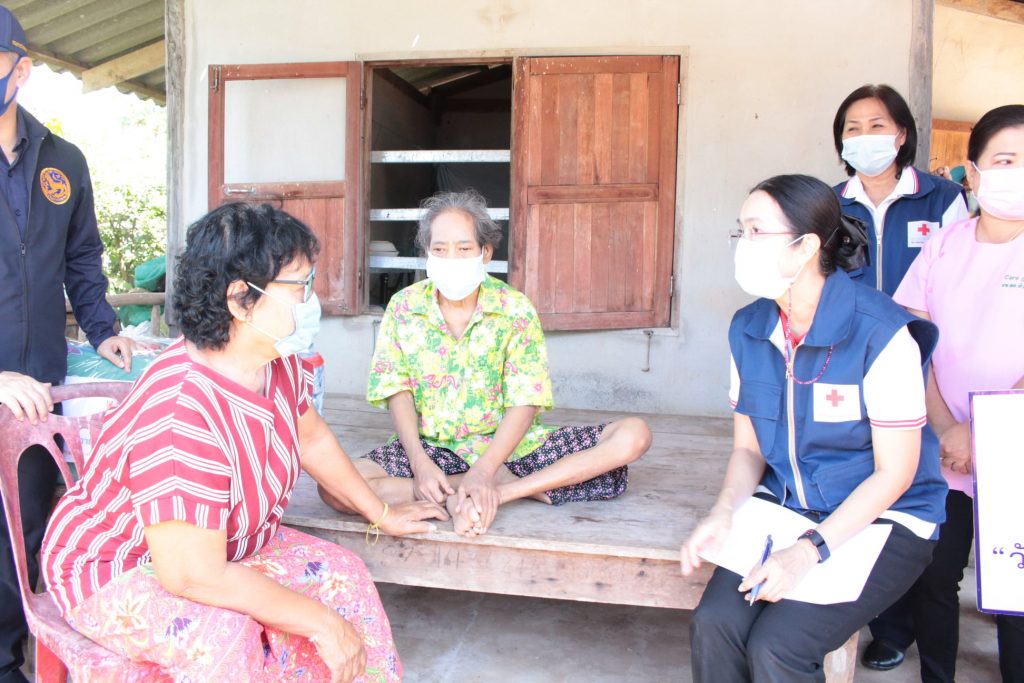 วันที่ 11 กุมภาพันธ์ 2564 นางมัทนา สุวัณณุสส์ นายกเหล่ากาชาดจังหวัดปราจีนบุรี พร้อมด้วย คณะกรรมการและสมาชิกเหล่ากาชาดจังหวัดปราจีนบุรี นายชัยวรรณ นิยม นายอำเภอศรีมหาโพธิ พัฒนาสังคมและความมั่นคงของมนุษย์จังหวัดปราจีนบุรี จิตอาสาพระราชทาน ปลัดอำเภอศรีมหาโพธิ สาธารณสุขอำเภอ ผู้นำท้องที่ท้องถิ่น และ อสม. ร่วมลงพื้นที่เยี่ยมผู้พิการที่ยากไร้ ขาดแคลน และด้อยโอกาส ราย นางสาวสำเนียง เหล่ามา อายุ 67 ปี บ้านเลขที่ 20 หมู่ 2 ต.หัวหว้า อ.ศรีมหาโพธิ จ.ปราจีนบุรี ตามโครงการ “วันกาชาด บรรเทาทุกข์ บำรุงสุข ปวงประชา”โดยเหล่ากาชาดจังหวัดปราจีนบุรี ได้มอบชุดอุปโภค – บริโภค จำนวน 1 ชุด มุ้ง จำนวน 1 หลัง ผ้าขนหนู จำนวน 1 ผืน สเปรย์แอลกอฮอล์ จำนวน 1 ขวด หน้ากากอนามัย จำนวน 2 ชิ้น ให้กับผู้พิการที่ยากไร้ ขาดแคลน และด้อยโอกาส เพื่อบรรเทาความเดือดร้อนเบื้องต้น พร้อมทั้งกล่าวให้กำลังใจ